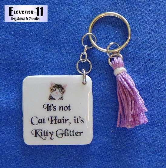 My keychains are made of a ceramic resin, and finished with designs on both front and rear, and then coated with a minimum of 2 coats of epoxy resin on each side. This makes them very strong, durable, and scratch and water resistant. Each keychain takes about 5-7 days to make and cure properly. They measure 1.5" x 1.5".