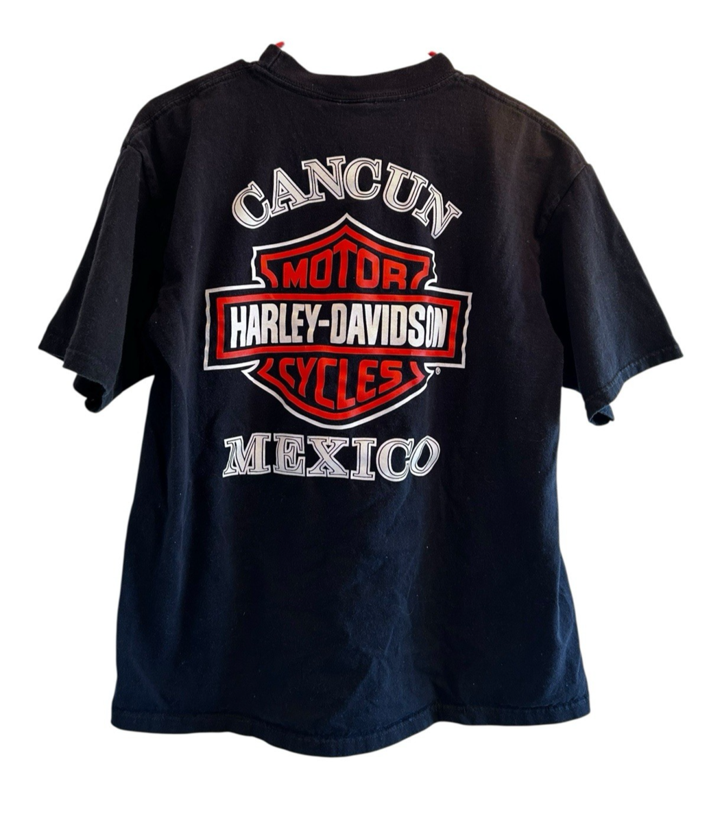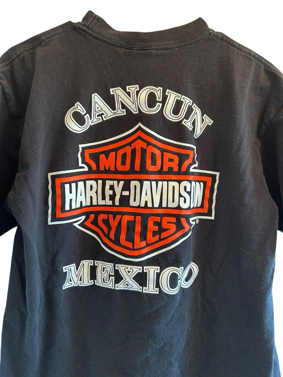 VINTAGE HARLEY DAVIDSON BLACK CANCUN MEXICO SHORT SLEEVE L T-SHIRT MOTOR CYCLES