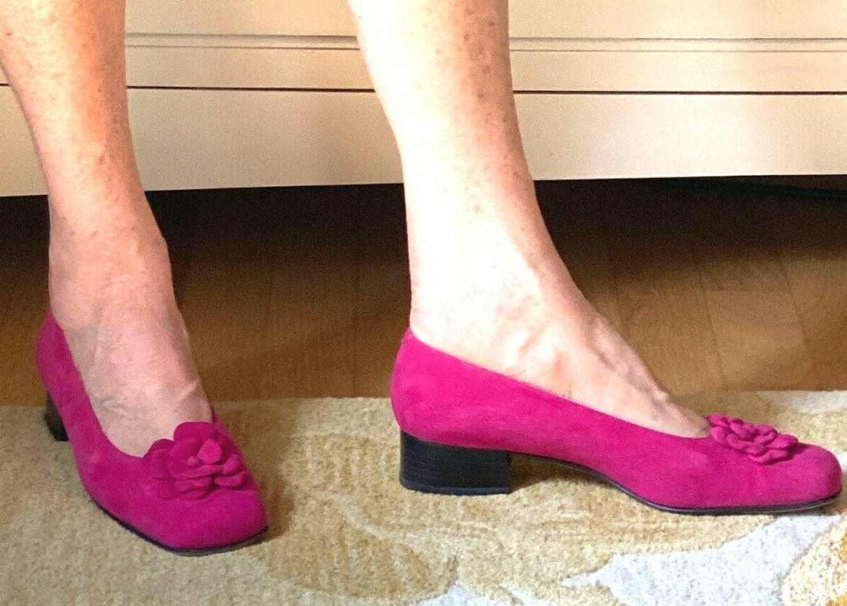 VTG Saks Fifth Avenue Folio Collection Suede Pumps Heels Fuchsia Pink 7.5B 90s