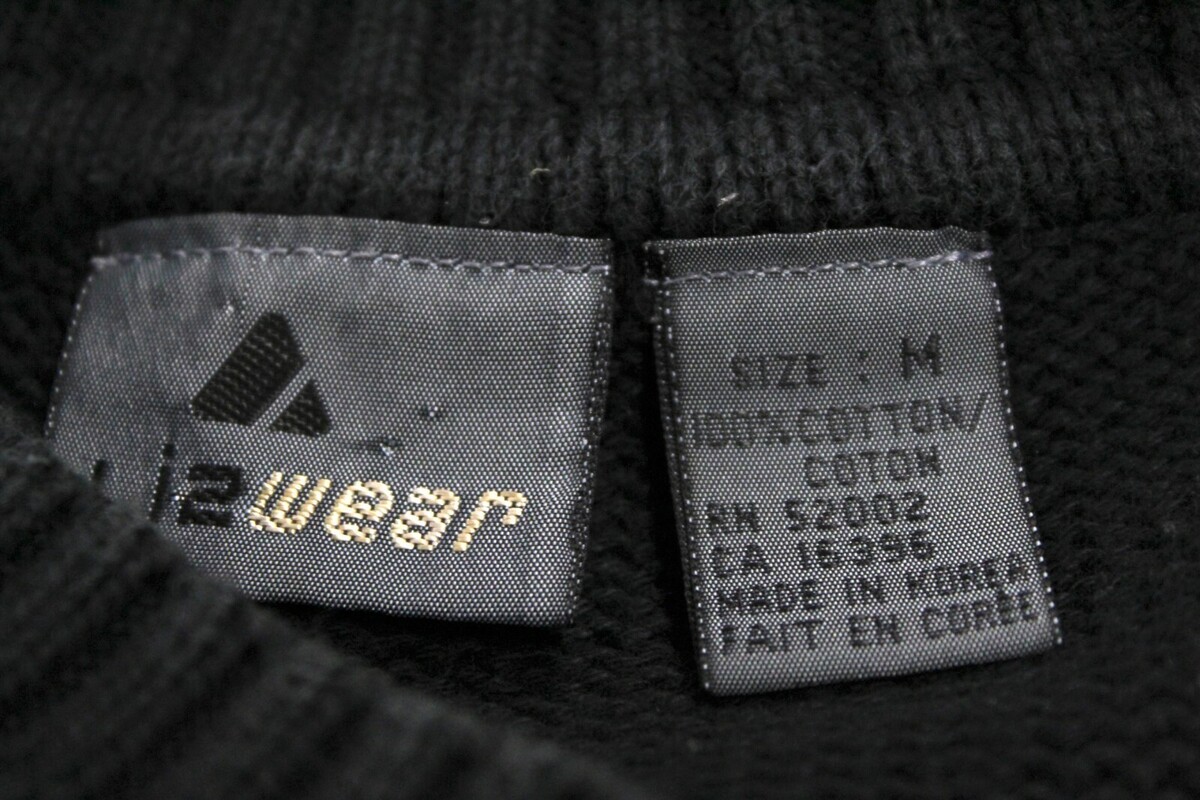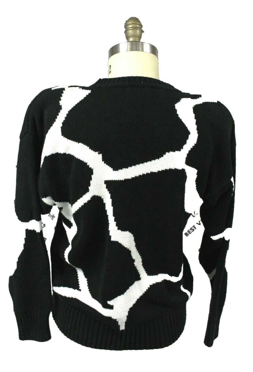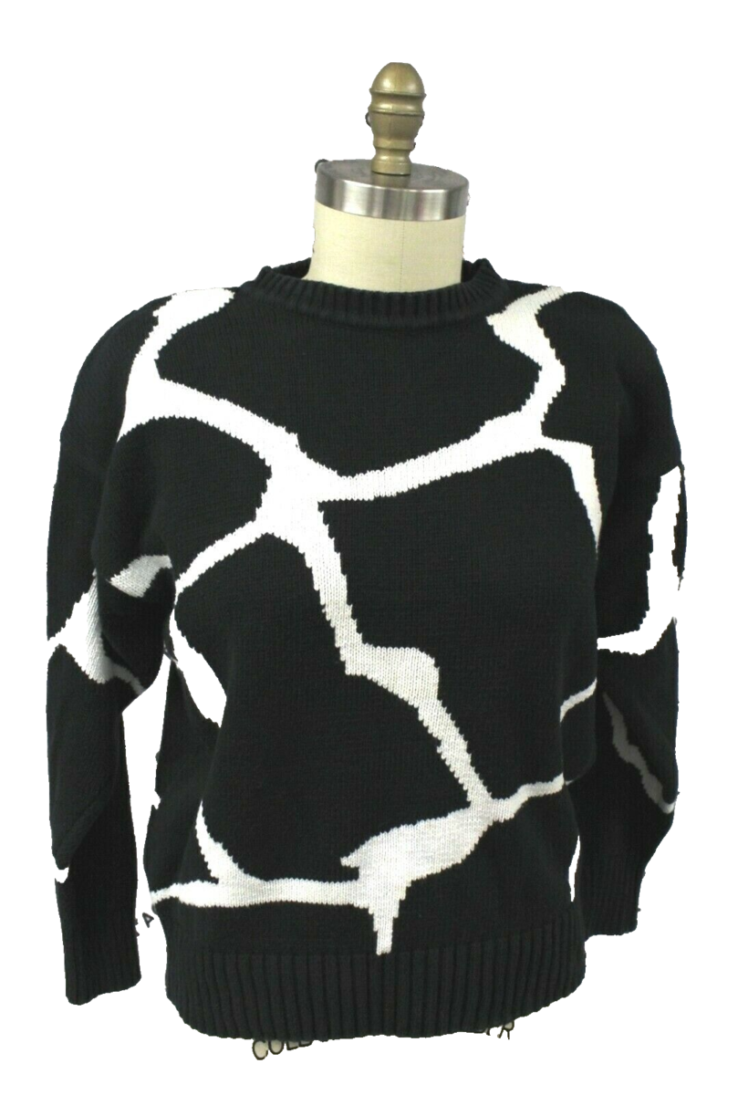 WOMAN'S VINTAGE 1980's LIZ WEAR PULLOVER SWEATER SZ M Black/WHITE Geometric