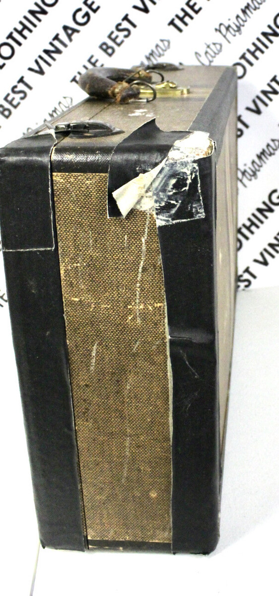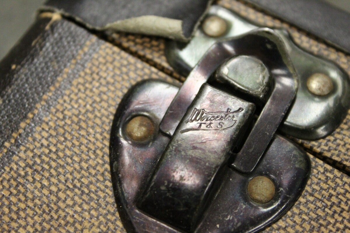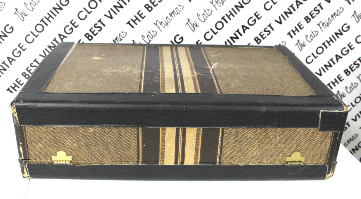 ANTIQUE VTG Worcester T&S 1940s TWEED STRIPED 21" SUITCASE Distressed Hardside