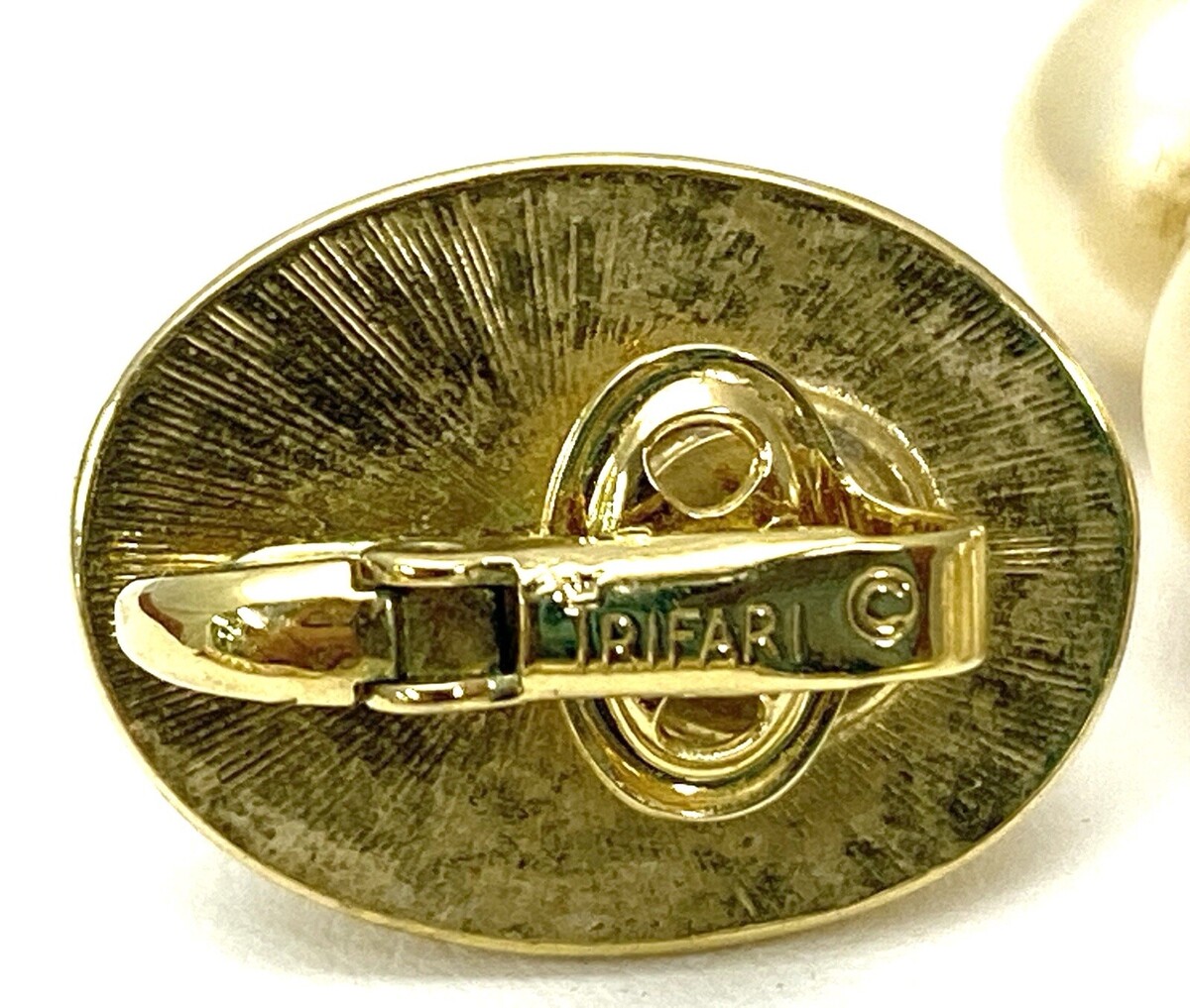 Signed TRIFARI FAUX PEARL 3 PC Parure TRIFANIUM GOLD Necklace Earrings