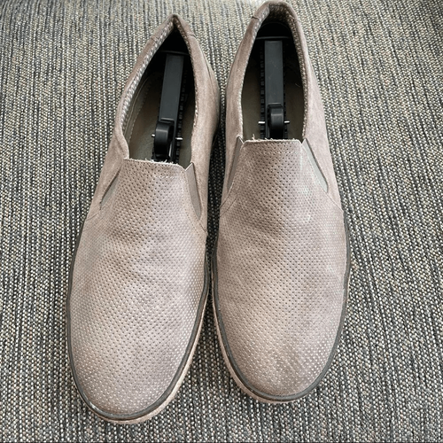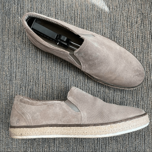 Roan by BED STU Taupe Perforated Suede Leather Loafers Woven Detail 10.5