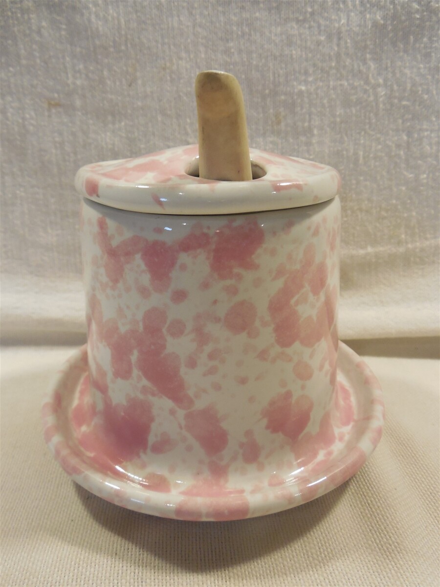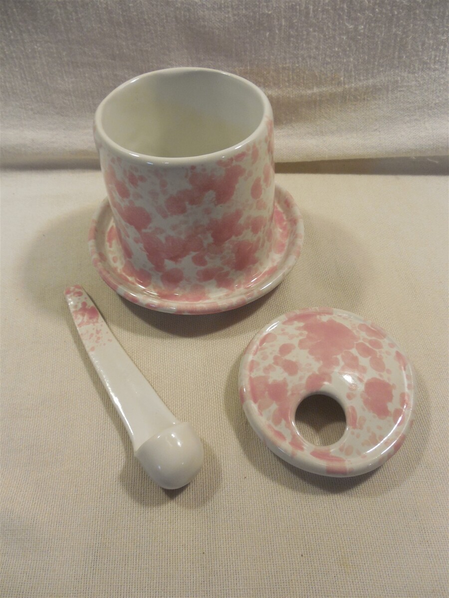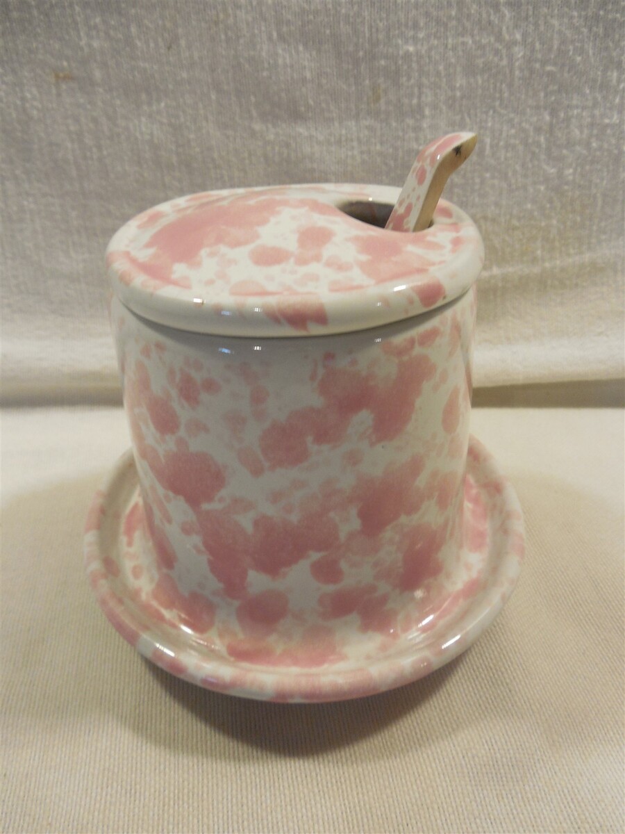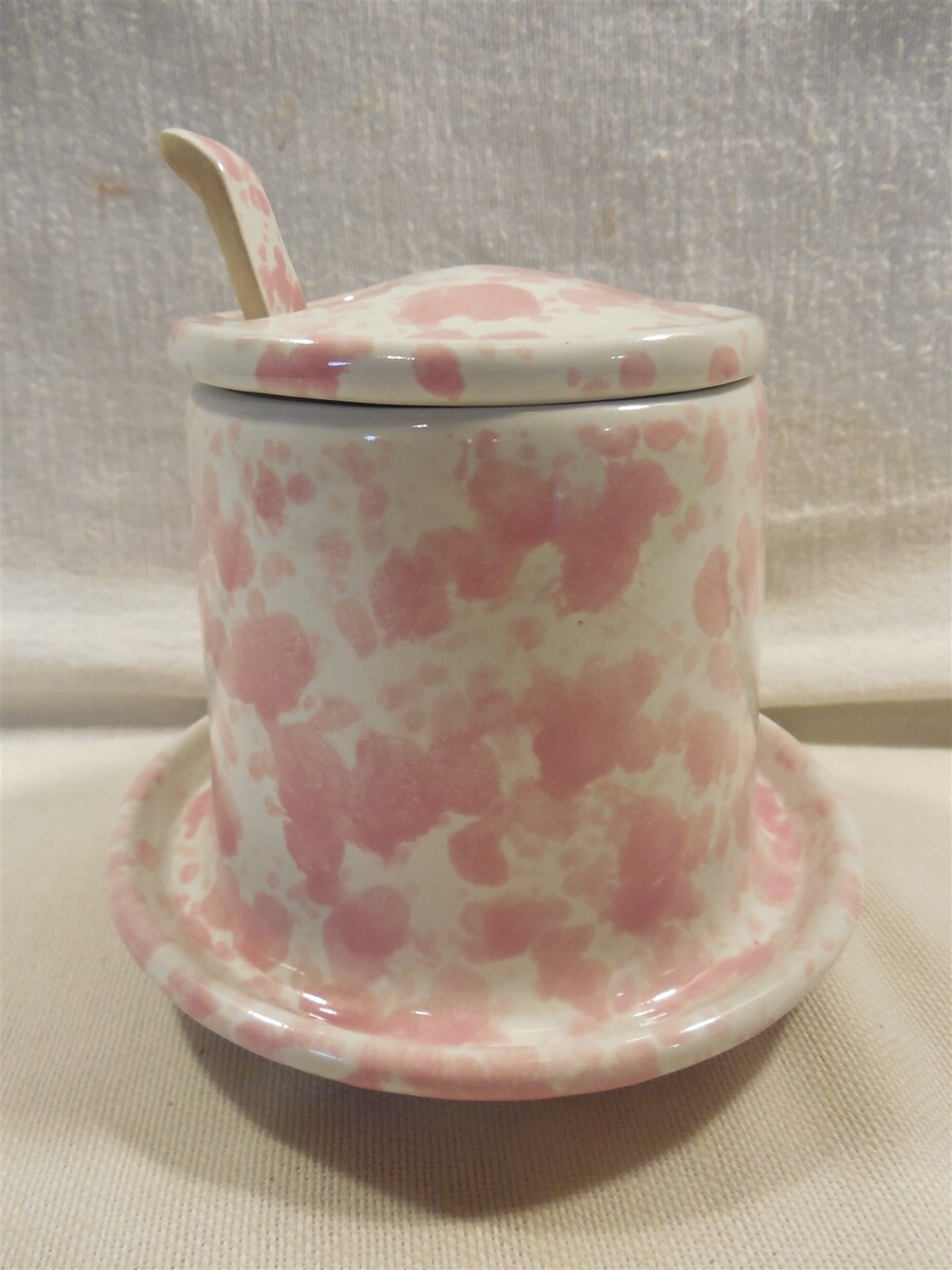 Vintage 1970s Bennington Potters Pottery Pink Agate Jam Jelly Jar w/ Lid & Spoon