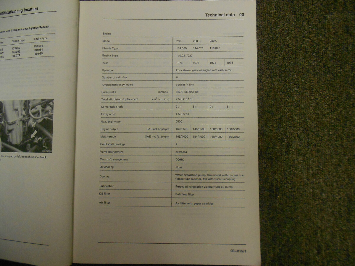 1976 1978 Mercedes Motore M 110 Passeggero Servizio Riparazione Negozio Manuale