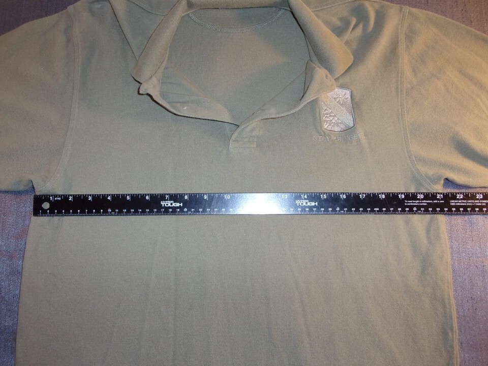 "STAY 43D BSTB" MEDIUM POLO GREEN SHIRT DISCONTINUED PRINT UNIT ARMY 4TH ID