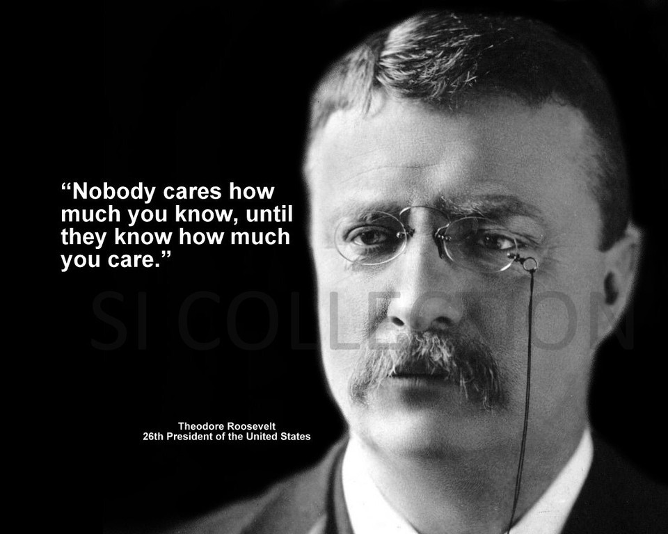 THEODORE ROOSEVELT "NOBODY CARES HOW MUCH YOU KNOW..." QUOTE PHOTO VARIOUS SIZES