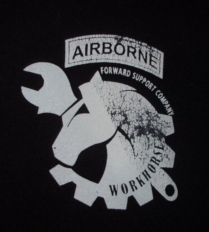 DISCONTINUED AIRBORNE FORWARD SUPPORT COMPANY WORKHORSE 27TH EN BN HOODIE LARGE