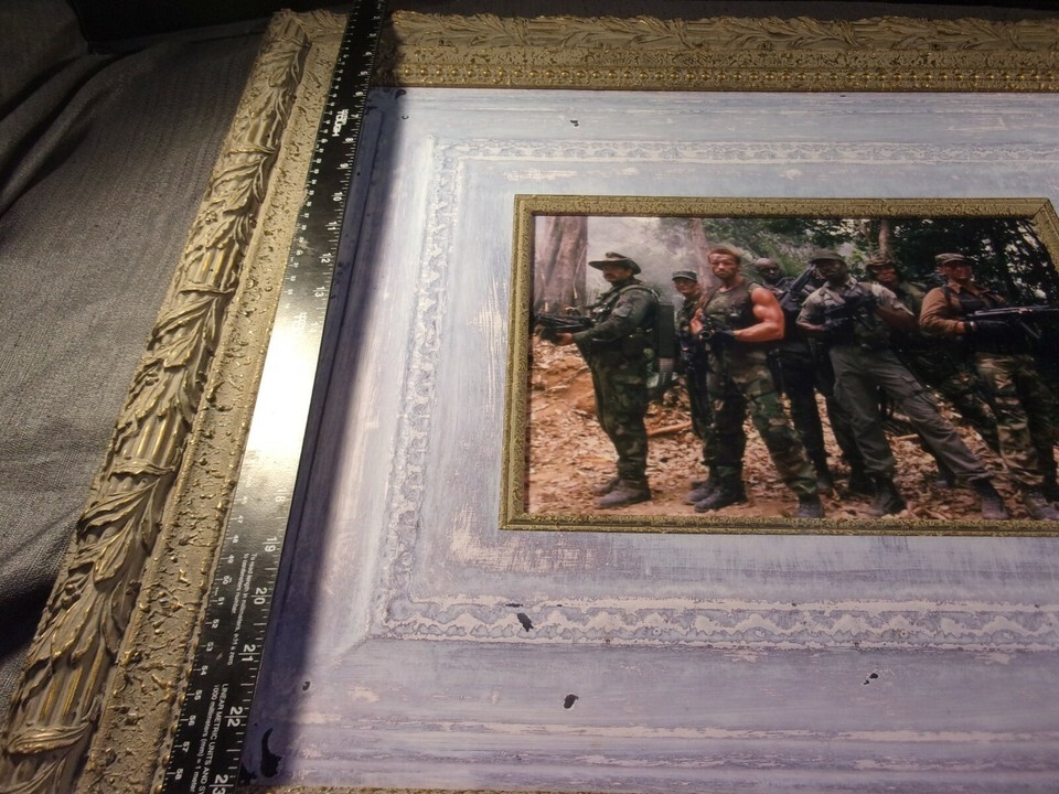 FRAMED CAST OF PREDATOR IN WARRIOR DESIGN VINTAGE CUSTOM FRAME MATTED 30" X 26"