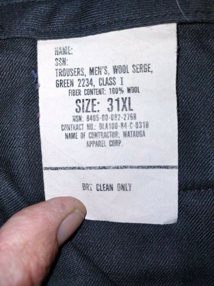 NWOT 1984 USMC US MARINE CORP ALPHA PANTS UNHEMMED WOOL GREEN 2234 SERGE 31XL
