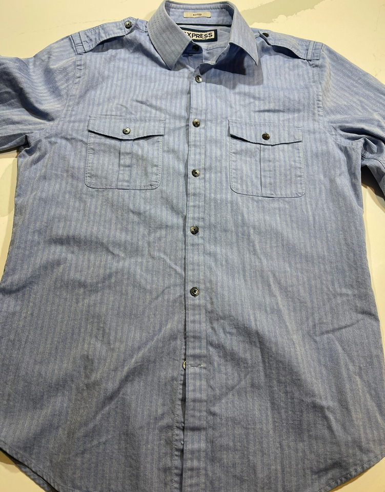 DESIGNER EXPRESS FITTED BUTTON TUCK IN LONG SLEEVE DRESS BLUE SHIRT SIZE MEDIUM