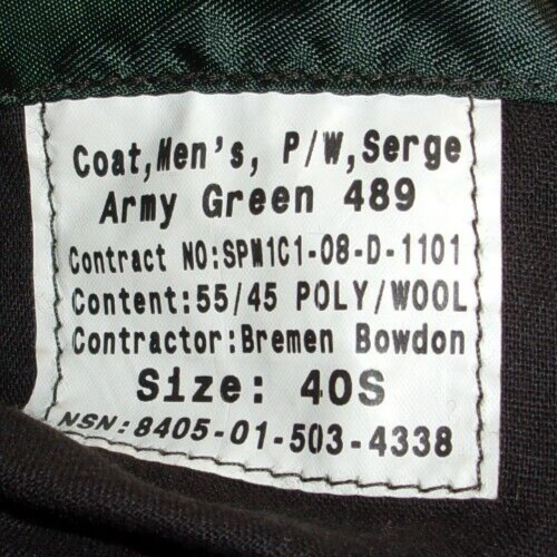ITEM: DSCP BREMEN-BOWDON SERGE AG-489 CLASS A DRESS GREEN ARMY UNIFORM JACKET COAT