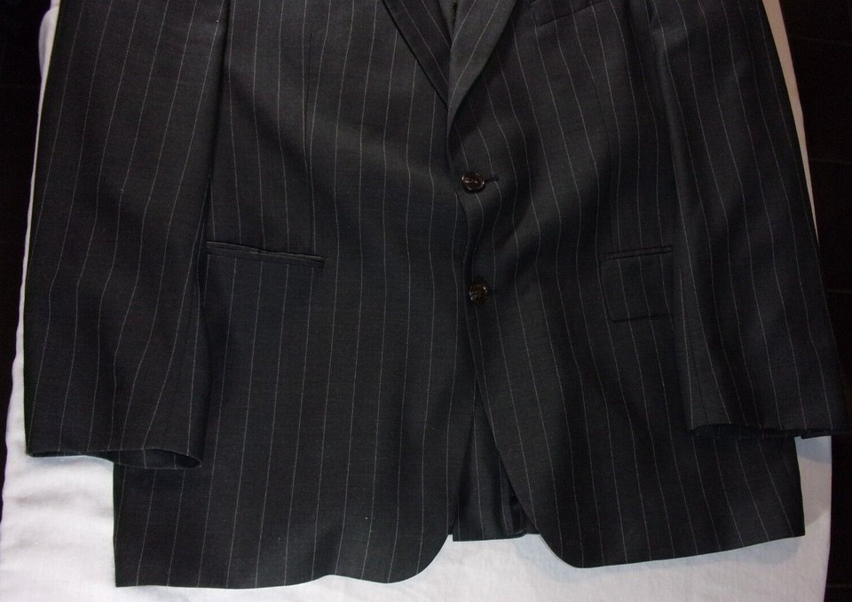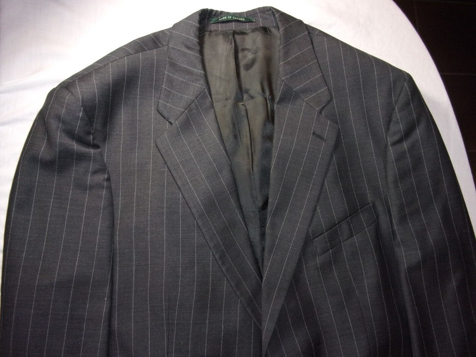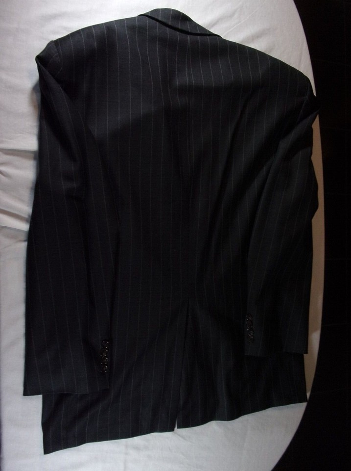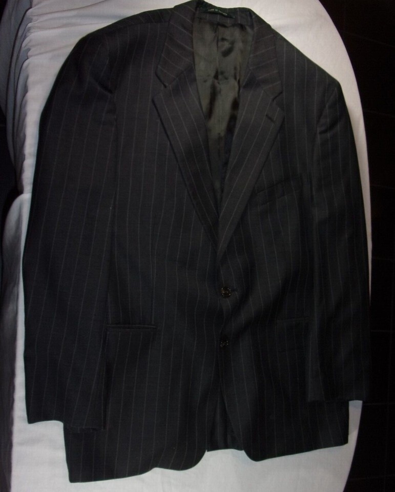 RALPH LAUREN MENS SUIT JACKET BLACK WITH IVORY PINSTRIPE SIZE 46 REGULAR SV 85