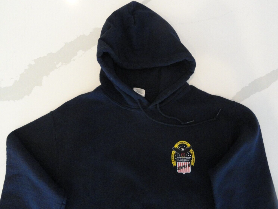 DISCONTINUED USMC YOUNG FOOTHILLS MARINE CORP LEAGUE SEMPER FI BLUE HOODIE SMALL