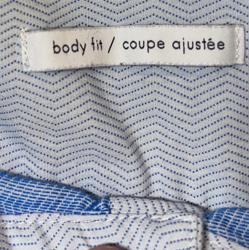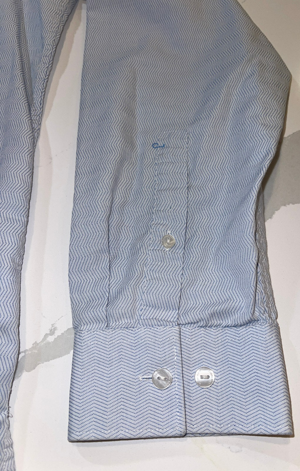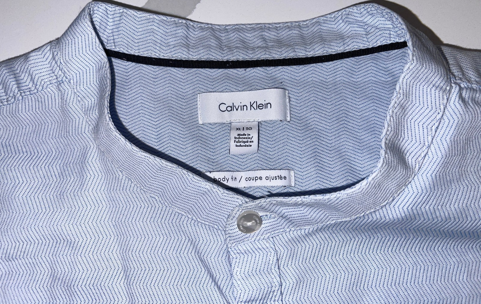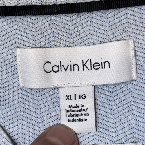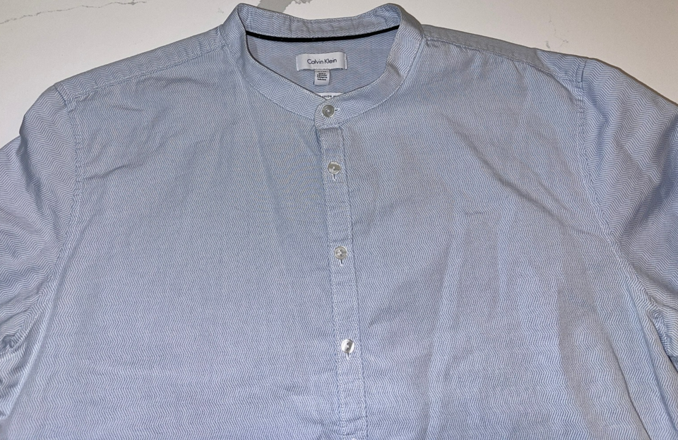 DESIGNER CALVIN KLEIN BODY FIT CHEVERON DESIGN BLUE BUTTON DOWN SHIRT X-LARGE