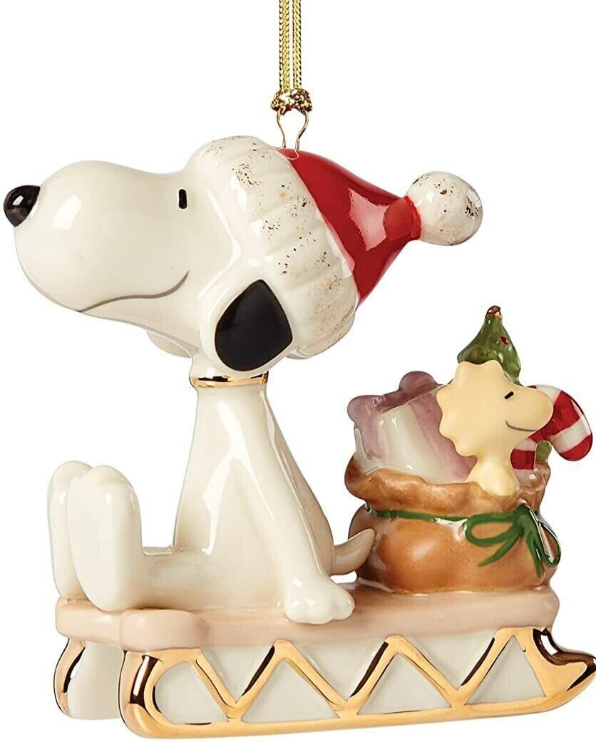Lenox Peanuts Snoopy Sledding Into The Holidays Ornament w/Woodstock #887759 New