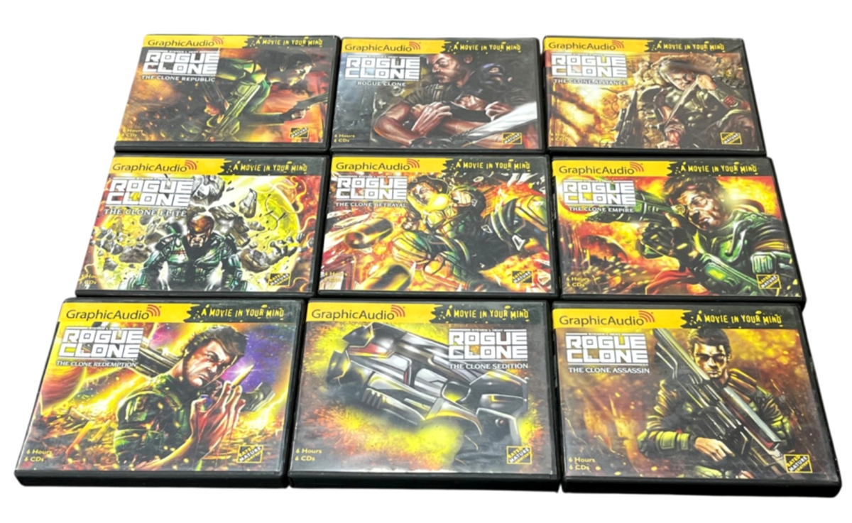 GraphicAudio Rogue Clone 1 - 8 by Steven L. Kent. These are audio books on CD. The 52 discs are in excellent condition. From a non-smoking home.
