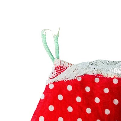 This vintage 1950's handmade his and hers polka dot fabric lace potholder 3 pc set is a kitschy and charming addition to any kitchen collection. Made in the United States, these small potholders feature a classic lace pattern and a colorful multicolor design, perfect for all occasions. With a retro 1950's style, these potholders are both functional and decorative, showcasing the craftsmanship of a bygone era. Hand wash only to preserve their unique crochet and homespun features, these potholders are a nostalgic reminder of a time past.