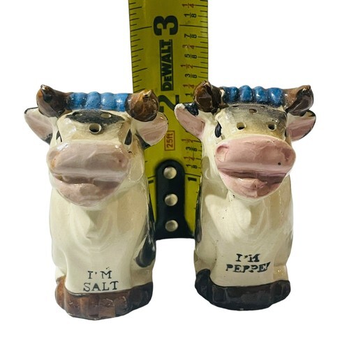 Vtg 1950’s Kitschy Ceramic I'm Salt & I'm Pepper Cow Shakers Japan MCM