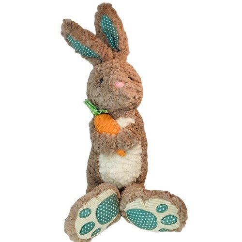 Pier 1 One Imports 26" Tan Plush Bunny Rabbit Carrot Green Polka Dots SOFT!!!! Excellent clean PREOWNED condition with no damage or stains. See all photos!