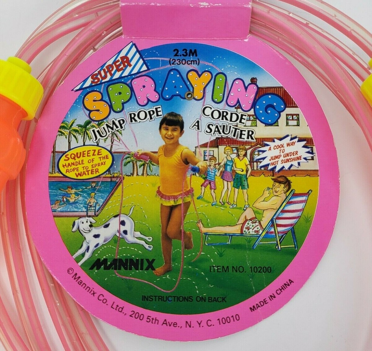 MANNIX SUPER SPRAYING JUMP ROPE WATER HANDLES ORANGE + PINK NEW NOS VINTAGE
