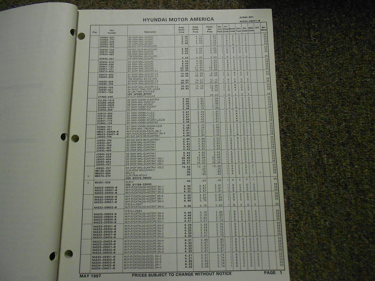 1997 Hyundai Parti Prezzo List Manuale Maggio Sonata Elantra Factory OEM Book 97