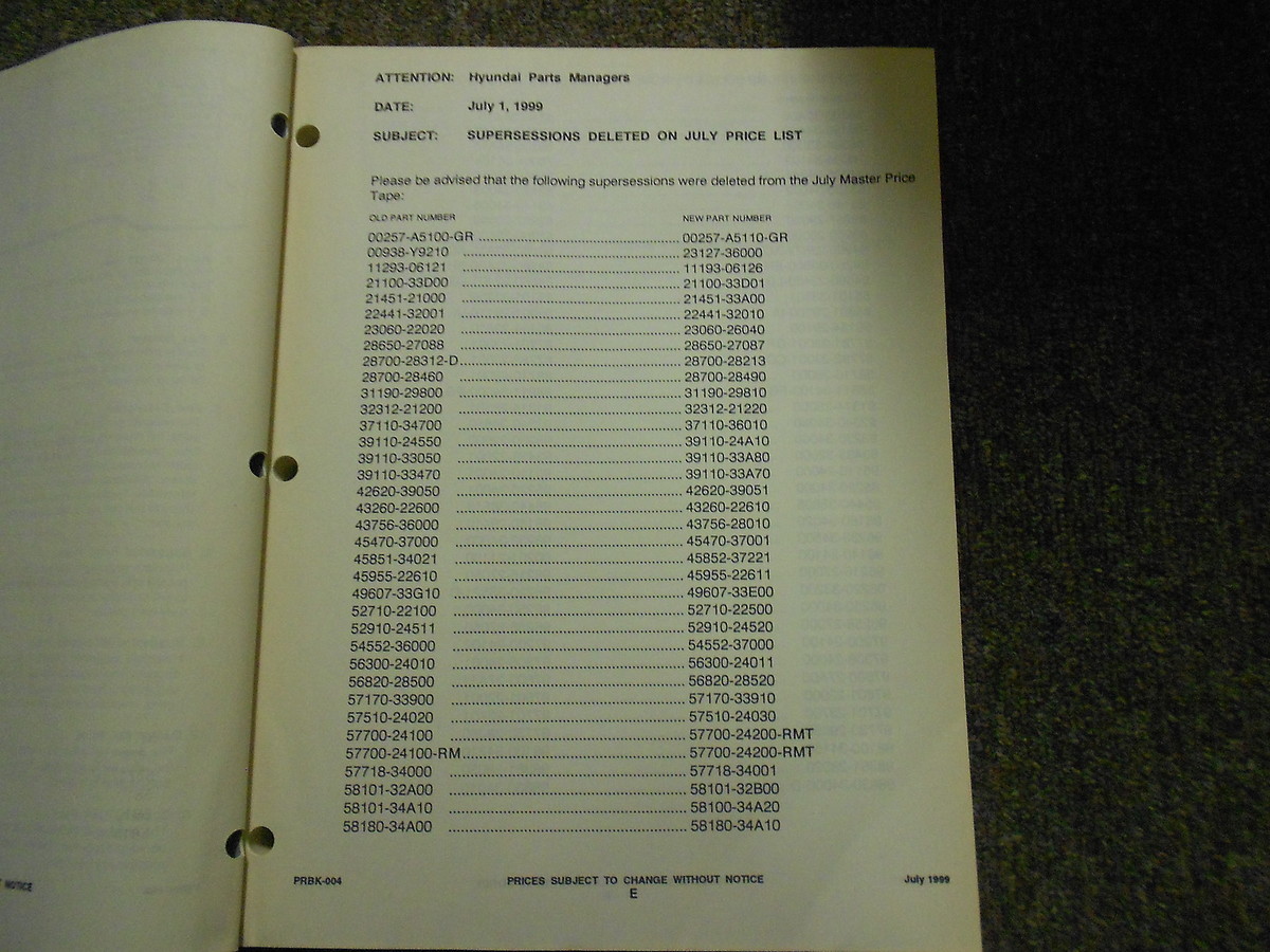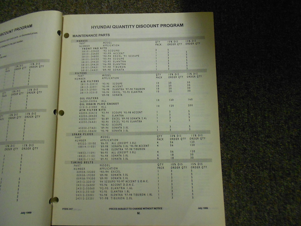 Manuale Prezzi Parti HYUNDAI 1999 Elantra Accent OEM FABBRICA LUGLIO 99