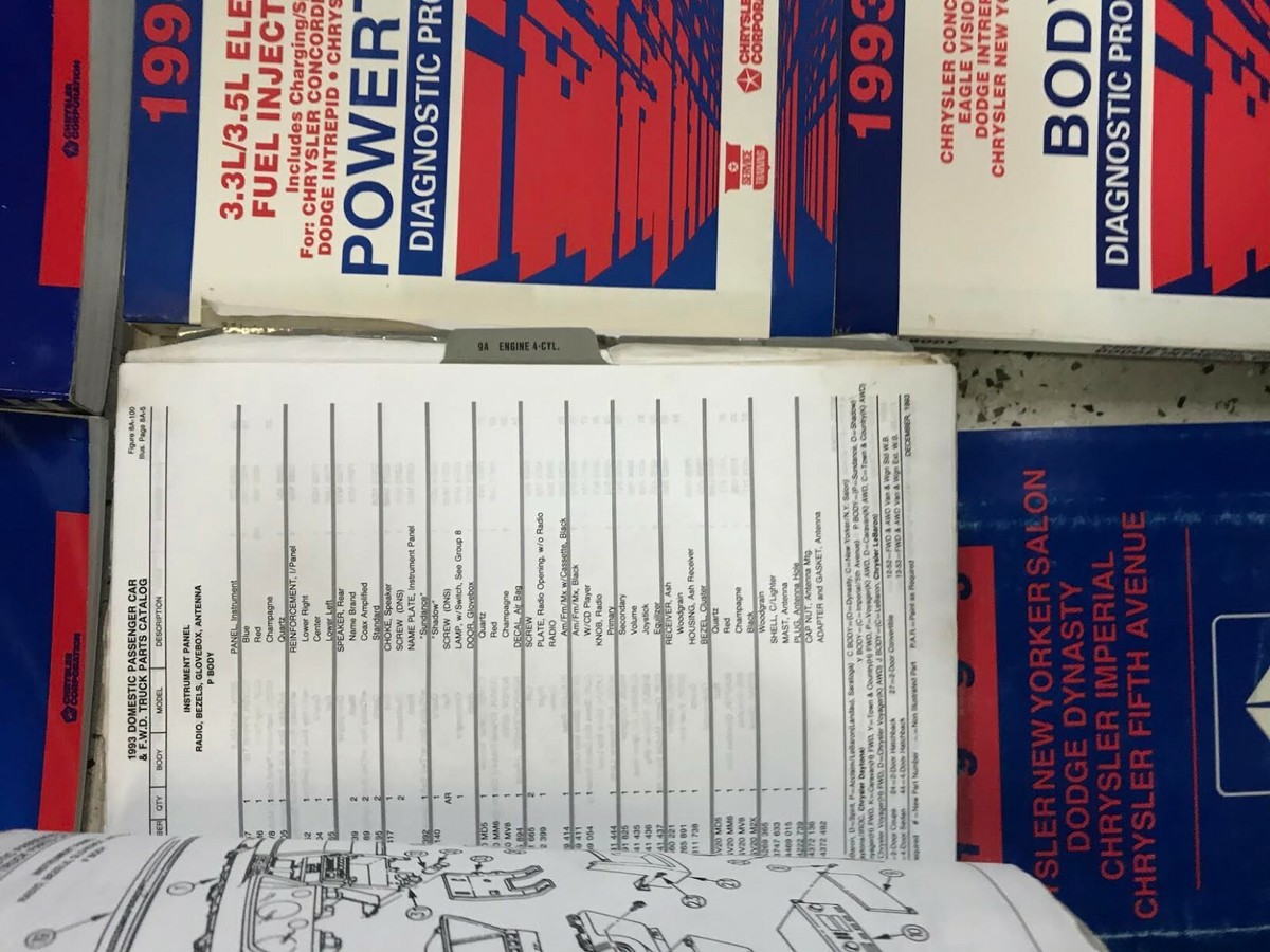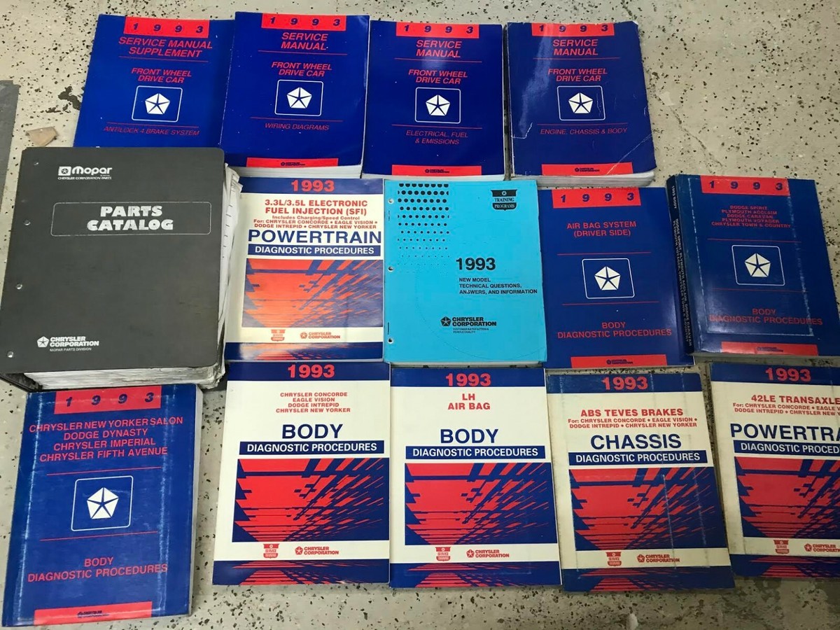1993 CHRYSLER / DODGE /PLYMOUTH MANUALE DI SERVIZIO TRAZIONE ANTERIORE SET A 3 VOLUMI, SUPPLEMENTO MANUALE DI SERVIZIO, Manuale catalogo ricambi e manuali di diagnostica