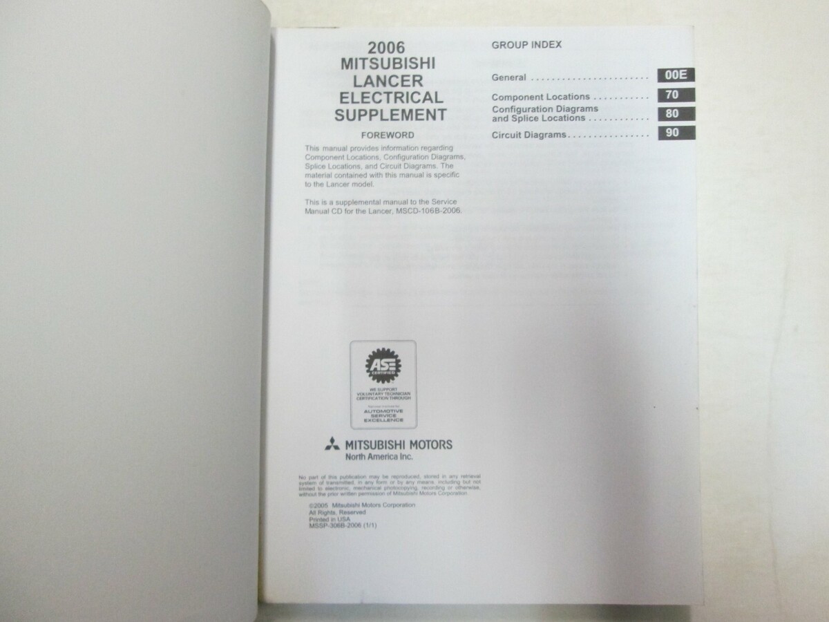 Manuale Di Riparazione Elettrico OEM 2005 MITSUBISHI LANCER