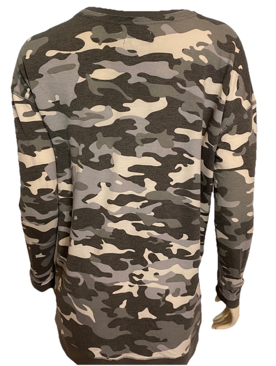 Mudpie Women's Long Sleeve Knit Top Camouflage Green Small