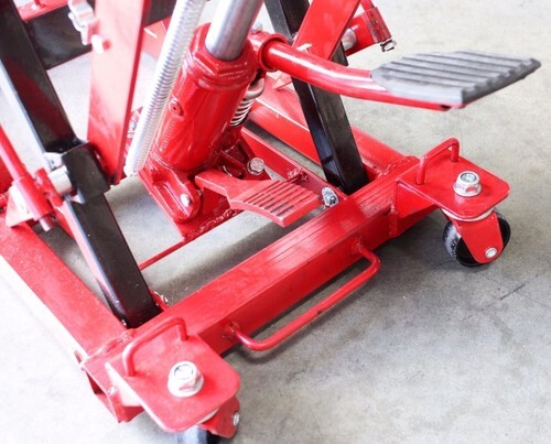 Equipped with Fast-Action Foot Pump And 5-Position Locking Mechanism Makes It Easy To Raise Your Vehicle To 15" High. And easy release drop foodpedal.