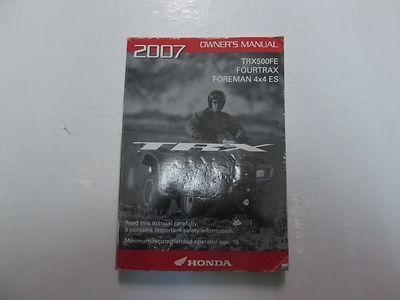 NEW 2007 HONDA TRX500FE FOURTRAX FOREMAN 4X4 ES OWNERS MANUAL WORN if you have further questions feel free to message us We will leave POSITIVE Feedback after we receive your payment. Please do not forget to give us POSITIVE Feedback and FIVE Stars on all of the Detailed Seller Ratings! If you are not satisfied with your shopping Experience, please contact us to get a solution before you decide to leave a NEUTRAL or a NEGATIVE Feedback, We will do our best to solve any problems for you as soon as possible. We will provide you with the BEST POSSIBLE service because the POSITIVE Feedback and FIVE Stars are what we are striving for. Please email me through "My Messages" or "Ask Seller Questions" if you have any question about our listings or your purchase. Please give us Five Star Rating! T