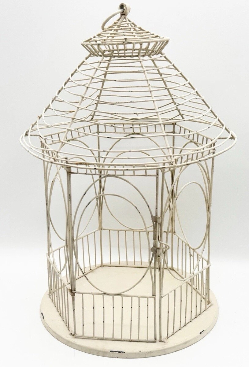 Vintage Wire Bird Cage Cream White Rustic 13" Decorative Lantern Rounded Metal