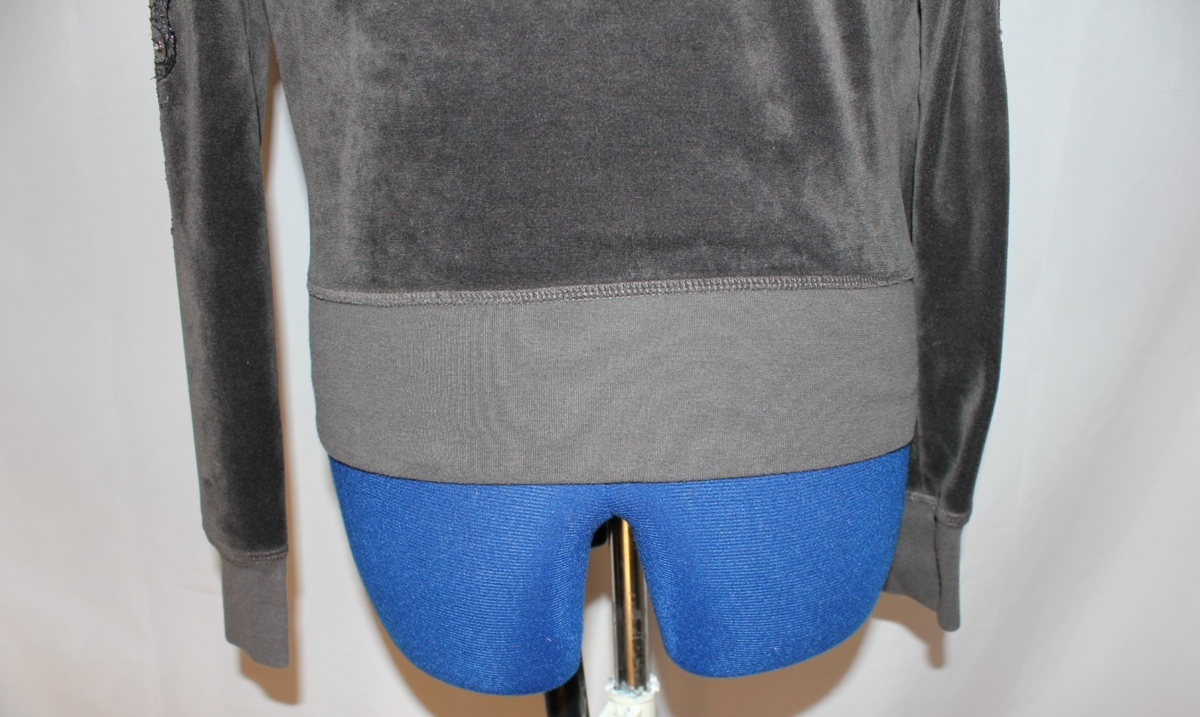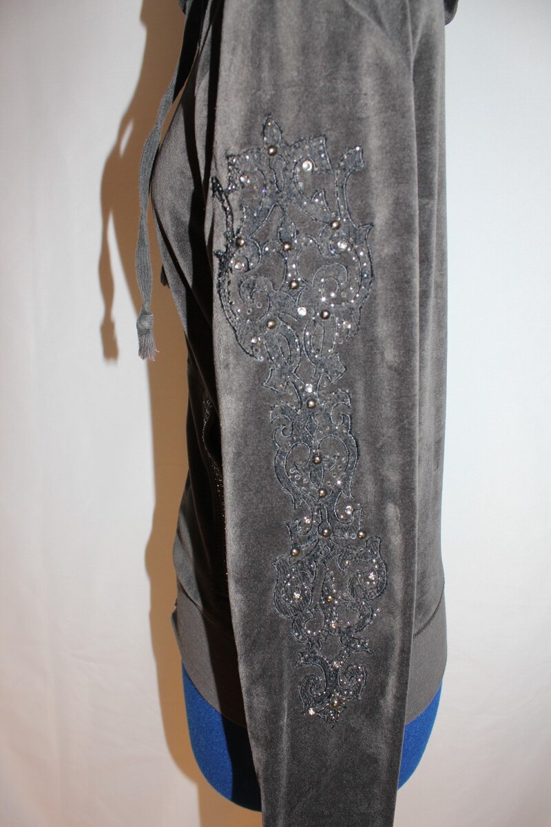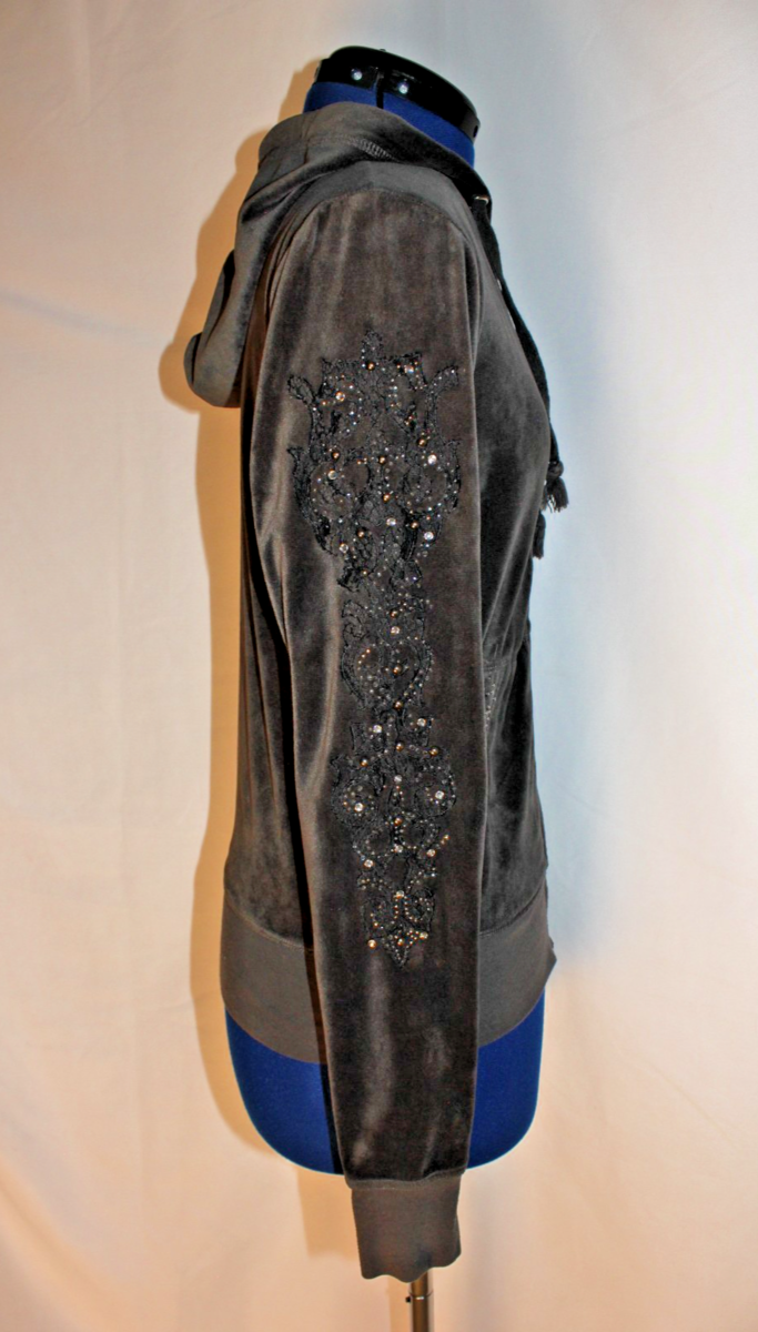 Vintage Y2K Miss Me Dark Gray Velour Full Zip Hoodie Embellished Sleeves Size M