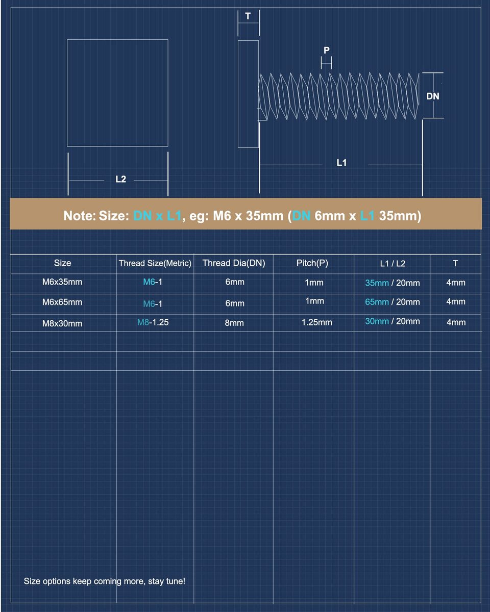 Versatile t Track Bolts - this t-track adapter accessory kit is a great solution to attach items firmly to your t track crossbar, compatible with t slot, perfect t-track adapter accessory kit to attach bike rack / ski rack / kayak rack, roof rack awning, solar panel, fishing rod holder, cargo box to roof rack cross bars, roof rack cargo basket, car rooftop platform or side rails, works well with most solar panel mounting brackets,Technical Specification - the t bolt is made of 304 solid stainless steel, 79 in x 0.79 in x 0.16 in (20mm x 20mm x 4mm) square head base, m6 / m8 threading, 30m / 35mm / 65mm length,Easy to Set Up - no drilling, cleaner look, just need to slide it into the t slot of your roof bar, and won't scratch your cross bar, great alternative to roof rack t track clamp*NOTE-please check the dimension of your cross bar rail, this t bolts base is 20mm x 20mm x 4mm (L x W x Thickness)*,Marine Resistant - stamping t slot accessories, more durable compared with welding parts, made of solid 304 stainless steel, it features rust resistant and corrosion resistant even in salt water, designed for most harsh environment, perfect t track accessories for suv / rv roof top,What You Will Receive - roof rack mounting hardware kit, include t-bolt with lock nuts and washer, satisfying purchasing experience of your customer is our priority, please feel free to contact us if you have other questions! Thanks for your supporting!