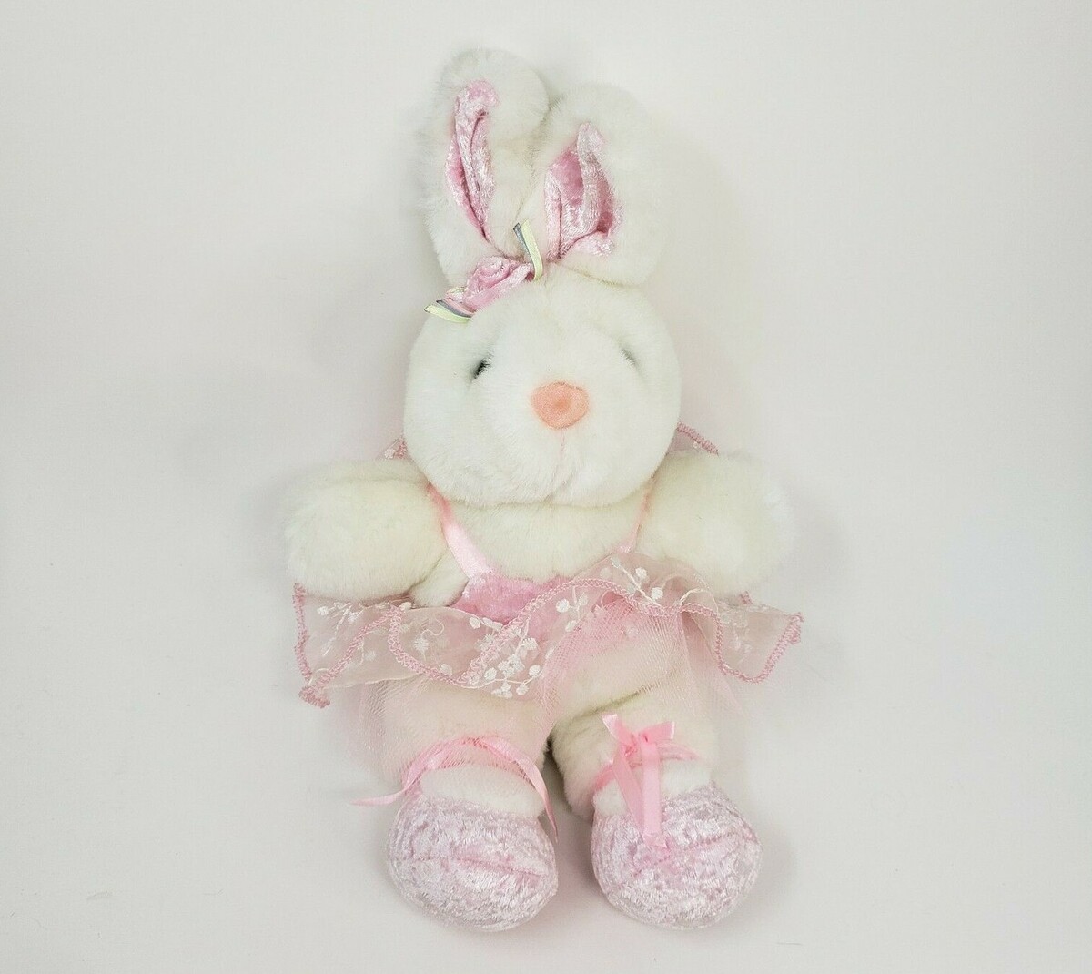 DAN DEE 13" VINTAGE WHITE BUNNY RABBIT PINK BALLERINA STUFFED ANIMAL PLUSH TOY