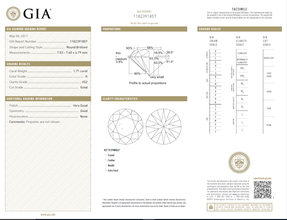 1.71 Carat Loose K / VS2 Round Brilliant Cut and similar items