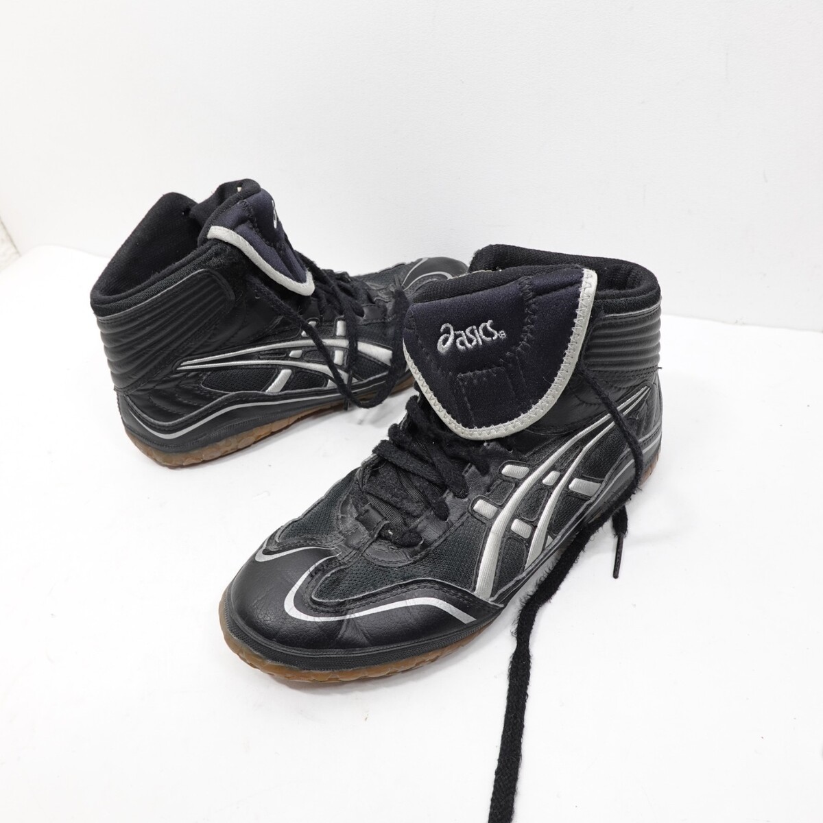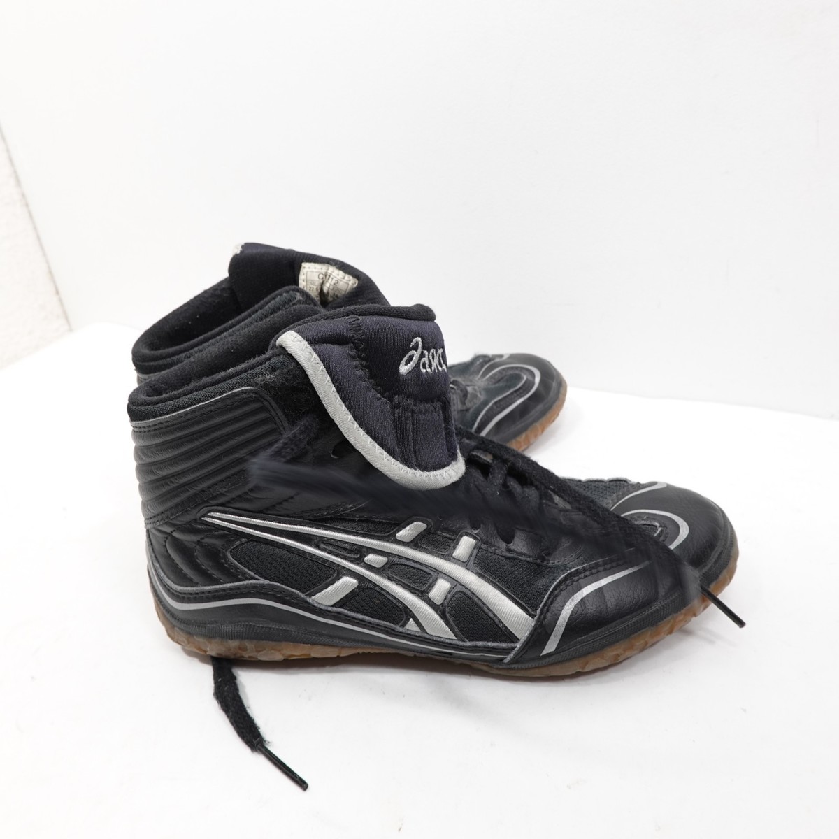 Vintage ASICS CY312 Wrestling Shoes Youth Size 5 EU 36 Black/Silver High-Top