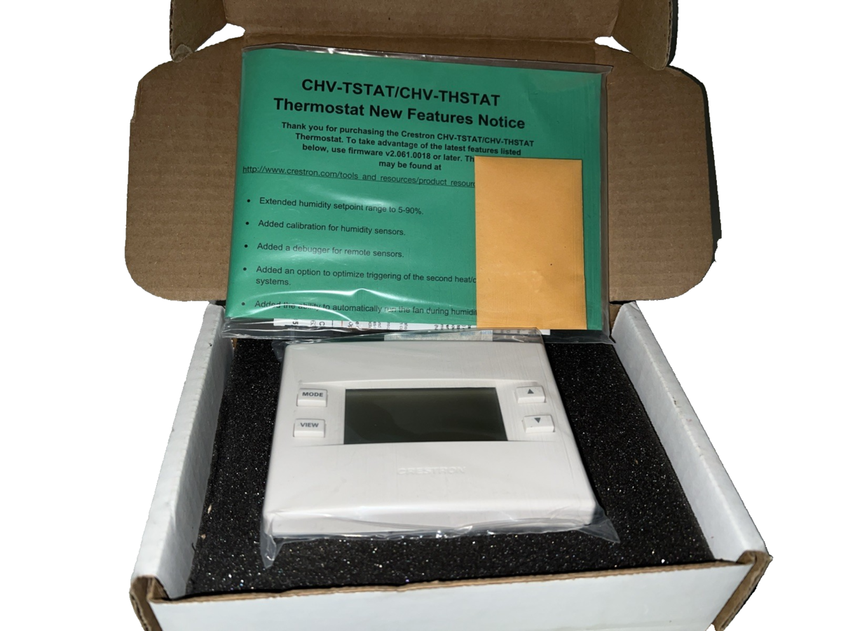 For your consideration is a Crestron CHV-THSTATW 6500870 Heating Cooling Relative Humidity Thermostat White