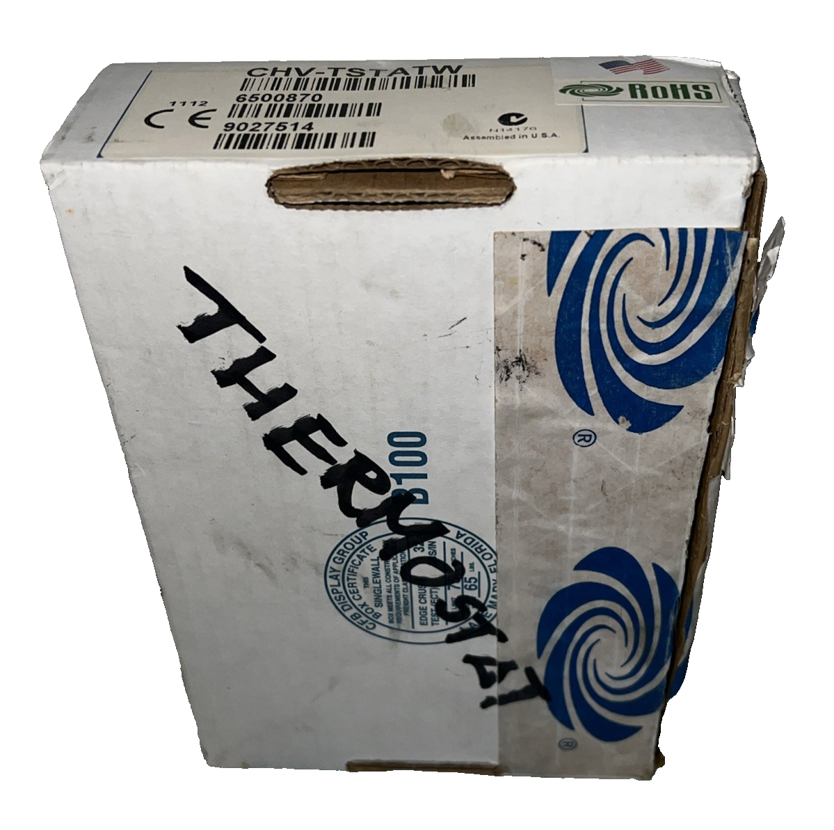 the box appears to have storage shelf life and has written "thermostat" in black sharpie