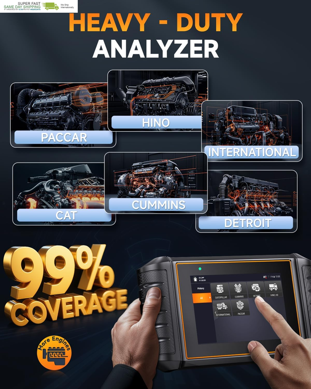 ?Versatile for Commercial Passenger Vehicles?This heavy duty scan tool supports heavy-duty trucks, pickup trucks, light trucks, buses, trailers, tractor, construction vehicles, agricultural vehicles. Compatible with multiple protocols such as J1587, J1939, J1708, J27145, ISO9141-2, ISO14230-2, ISO15765-4. !!Note!!: Alison transmission are not currently supported and are being developed.