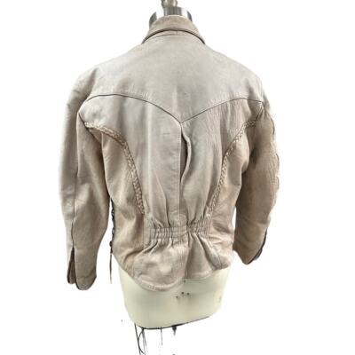 VTG REtro Hot Leathers Womens Motorcycle Jacket Fitted Braided Beige Womens L