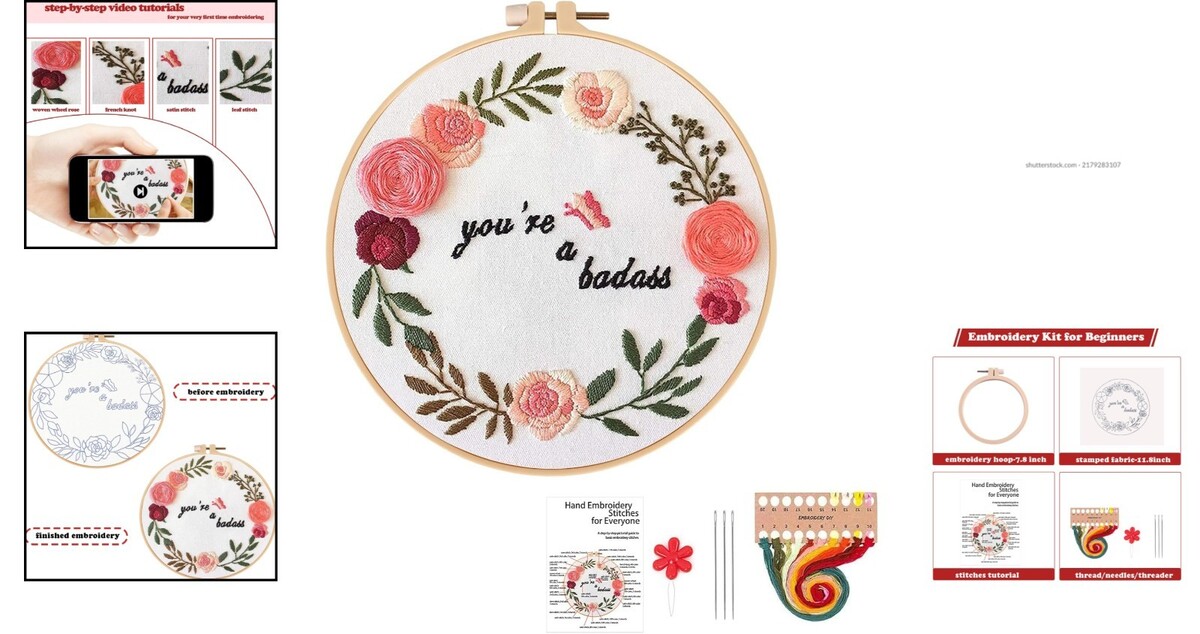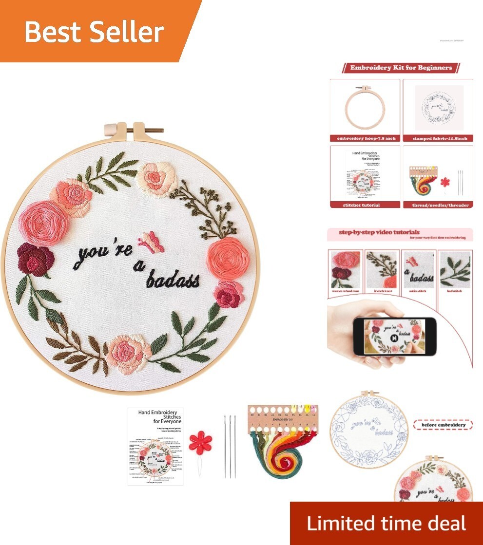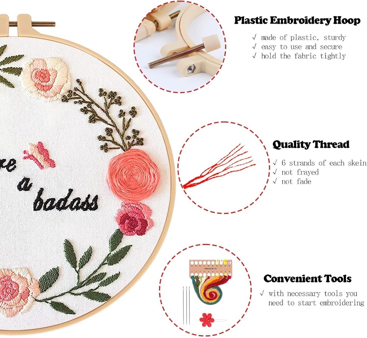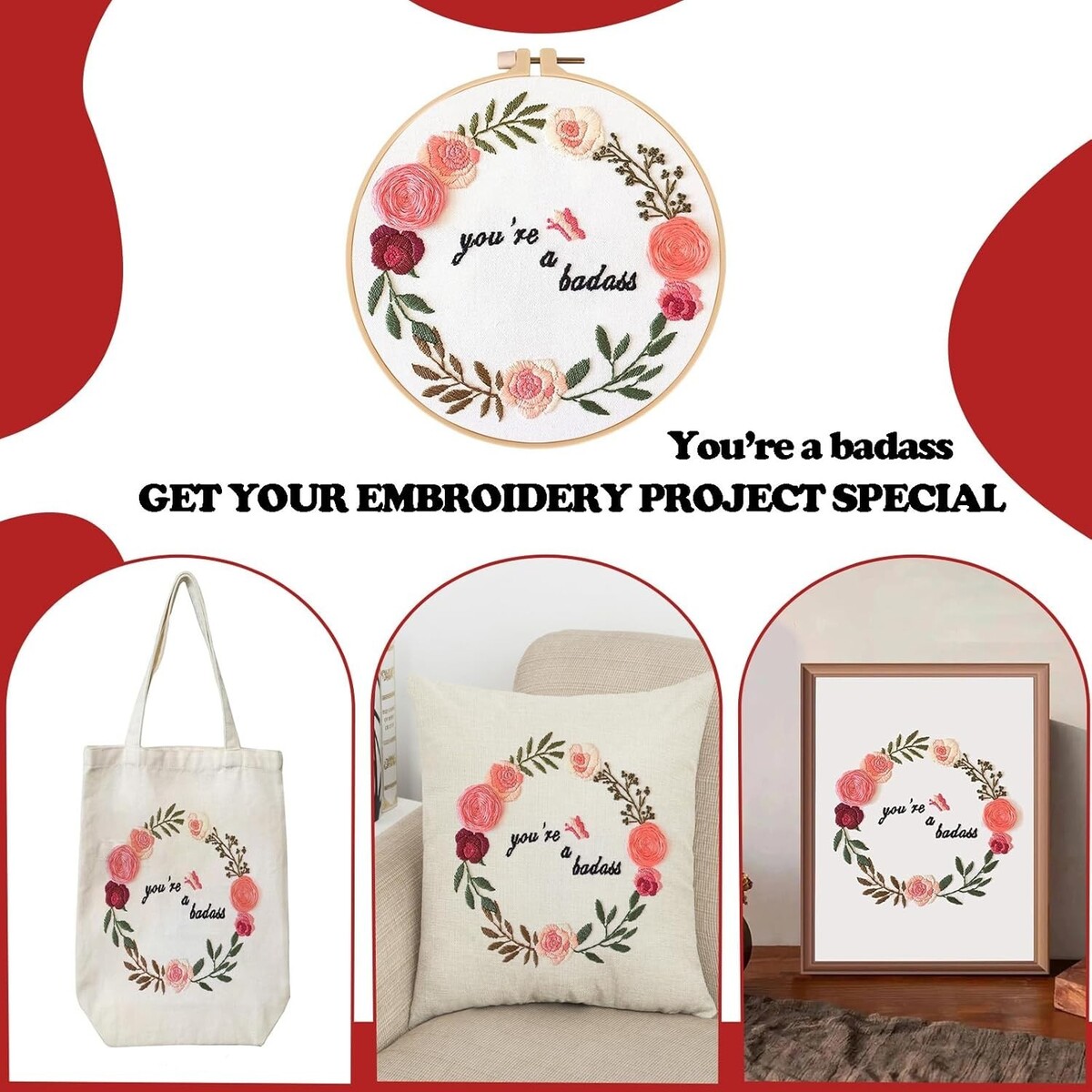 This inspirational embroidery kit is adorned with vibrant flower motifs and cheeky phrases, elevating your crafting experience.