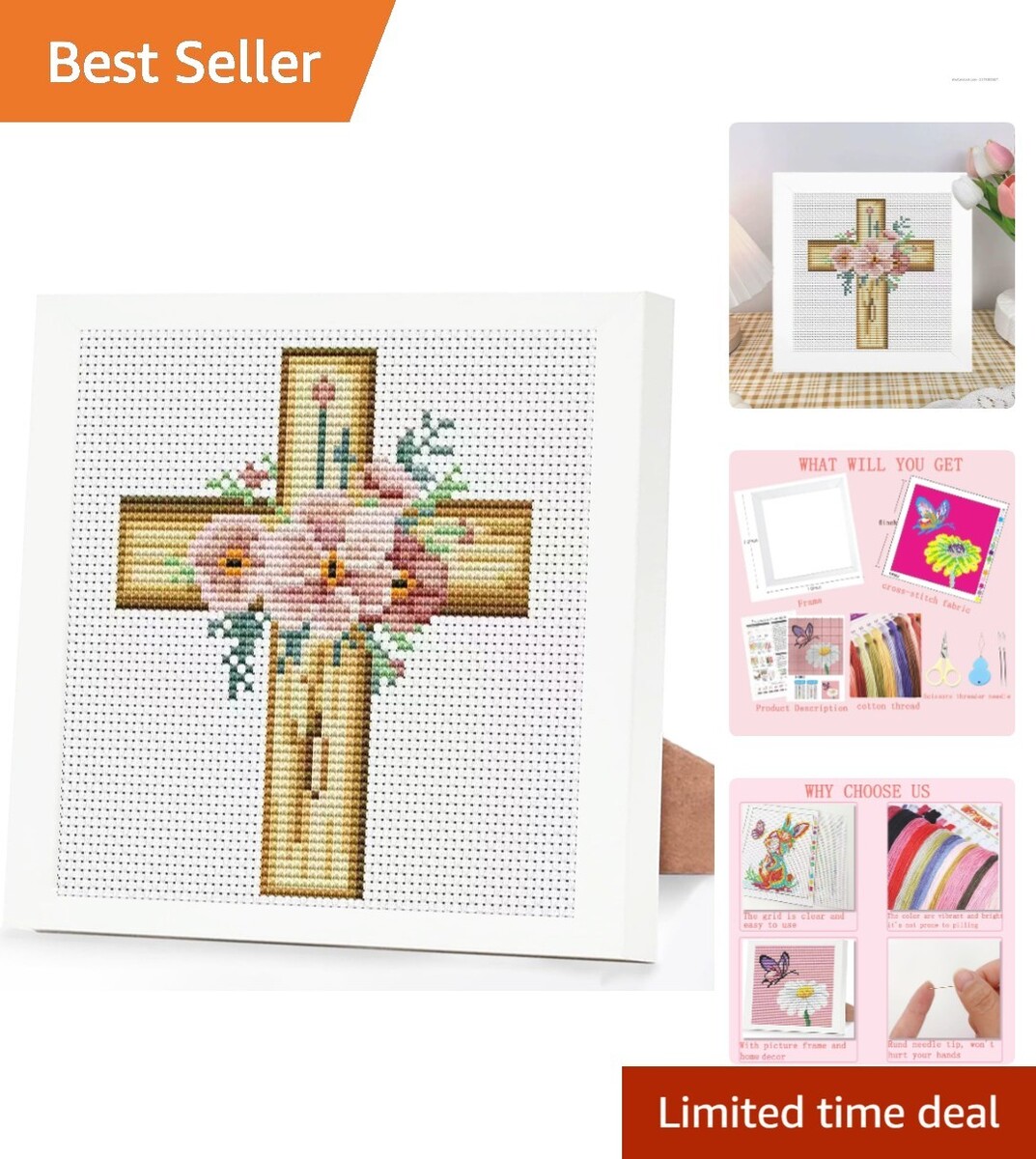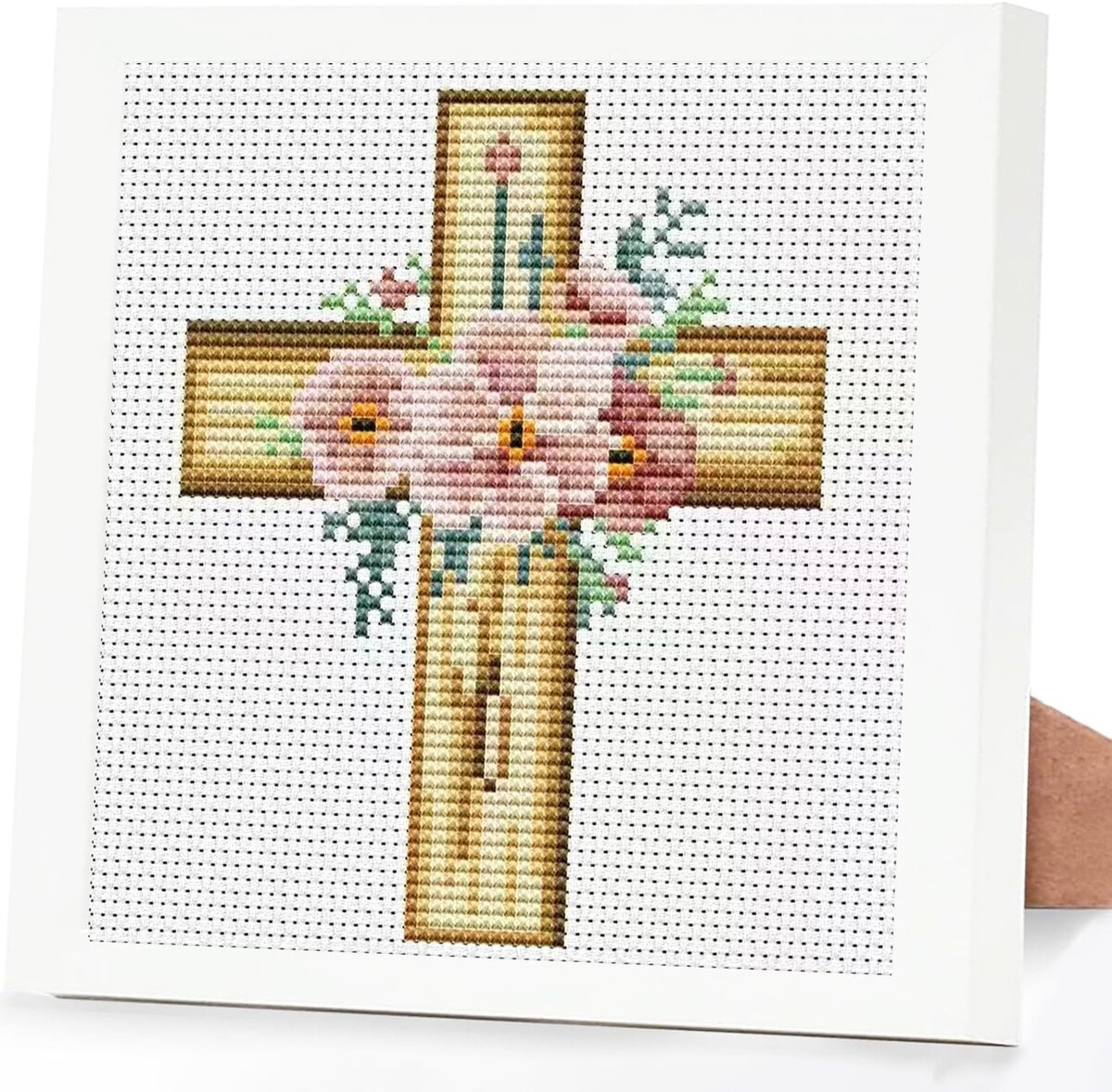 Complete Cross Stitch Kit with Framed Floral Design - Perfect for Beginners