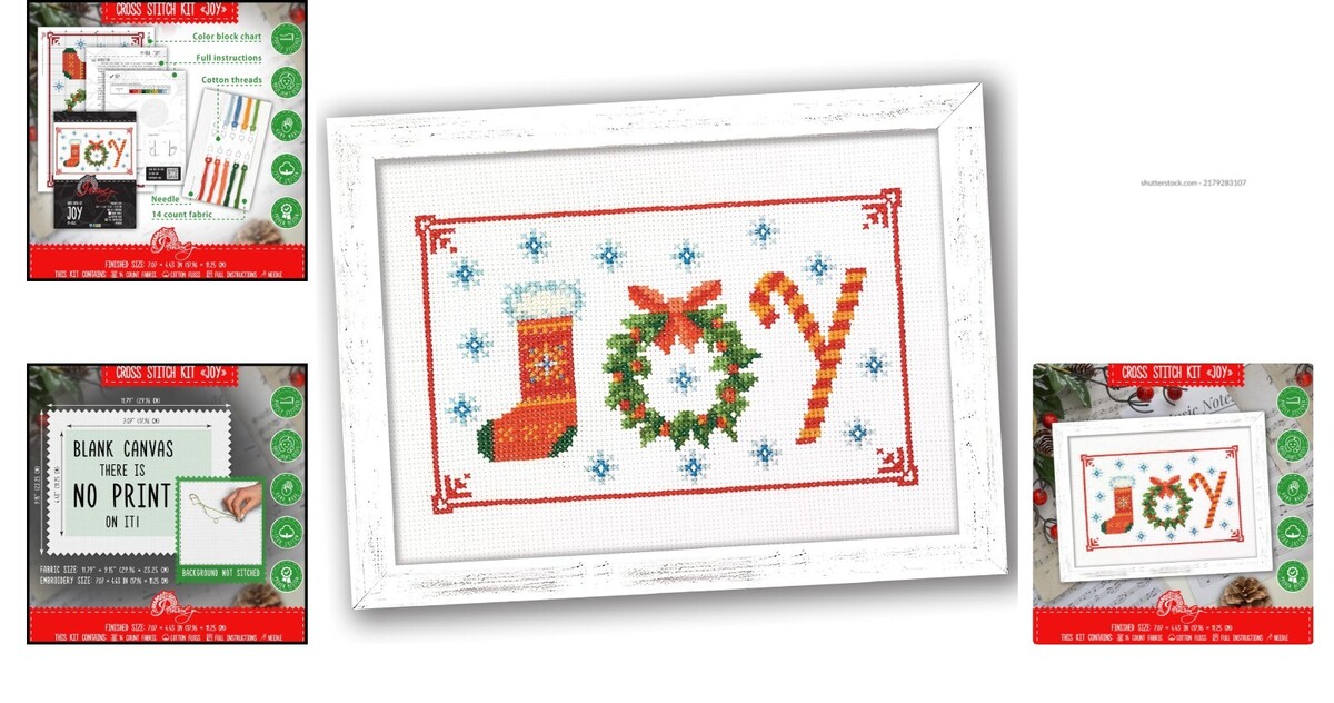 Craft the perfect memory or gift this holiday season with this unique and thoughtful kit. Elevate your stitching experience and celebrate the season with 'JOY'!