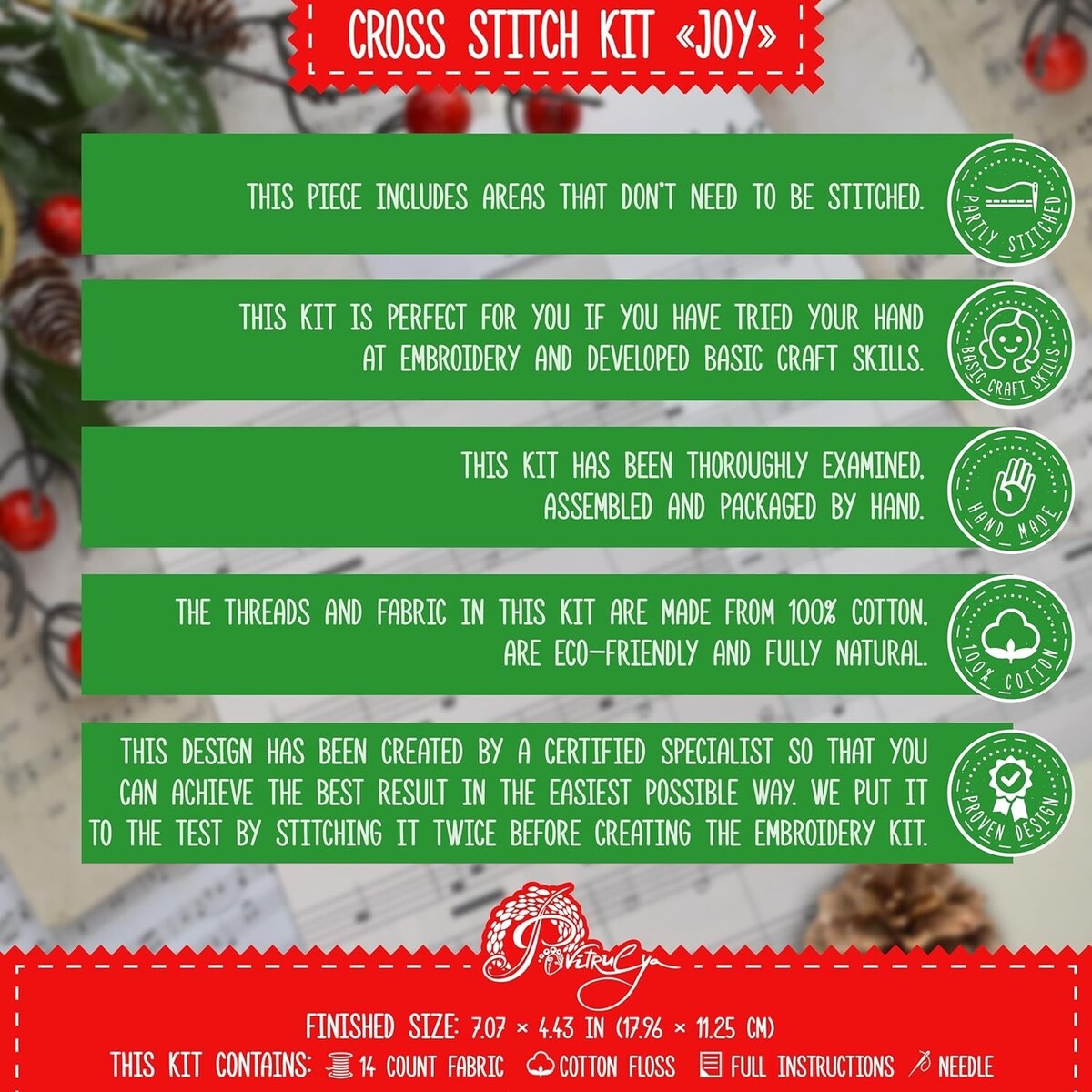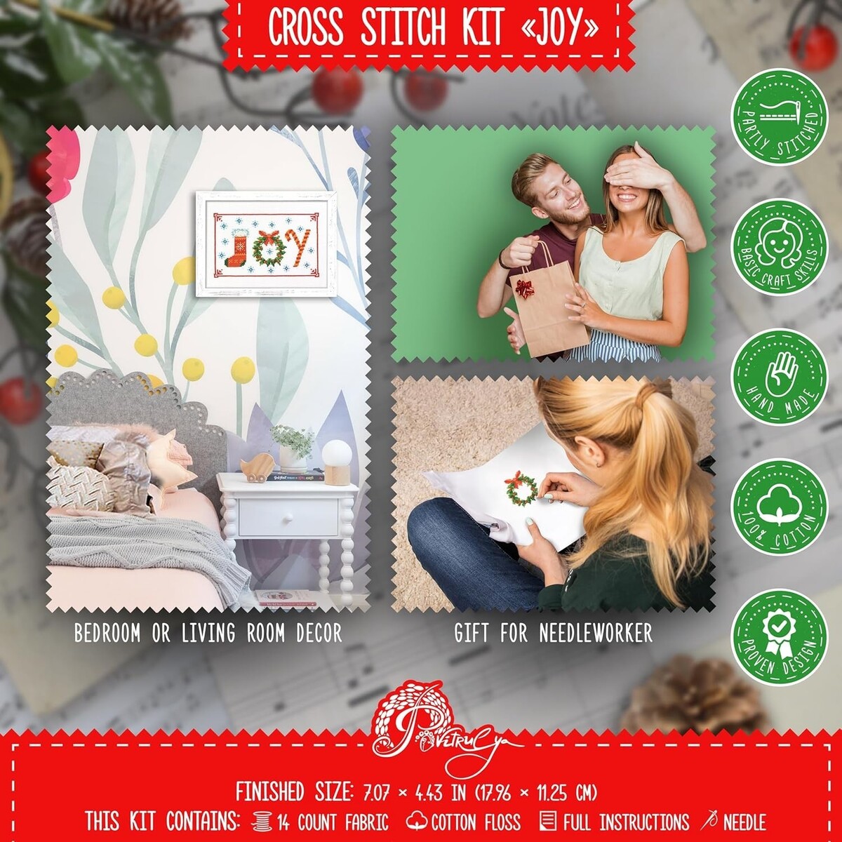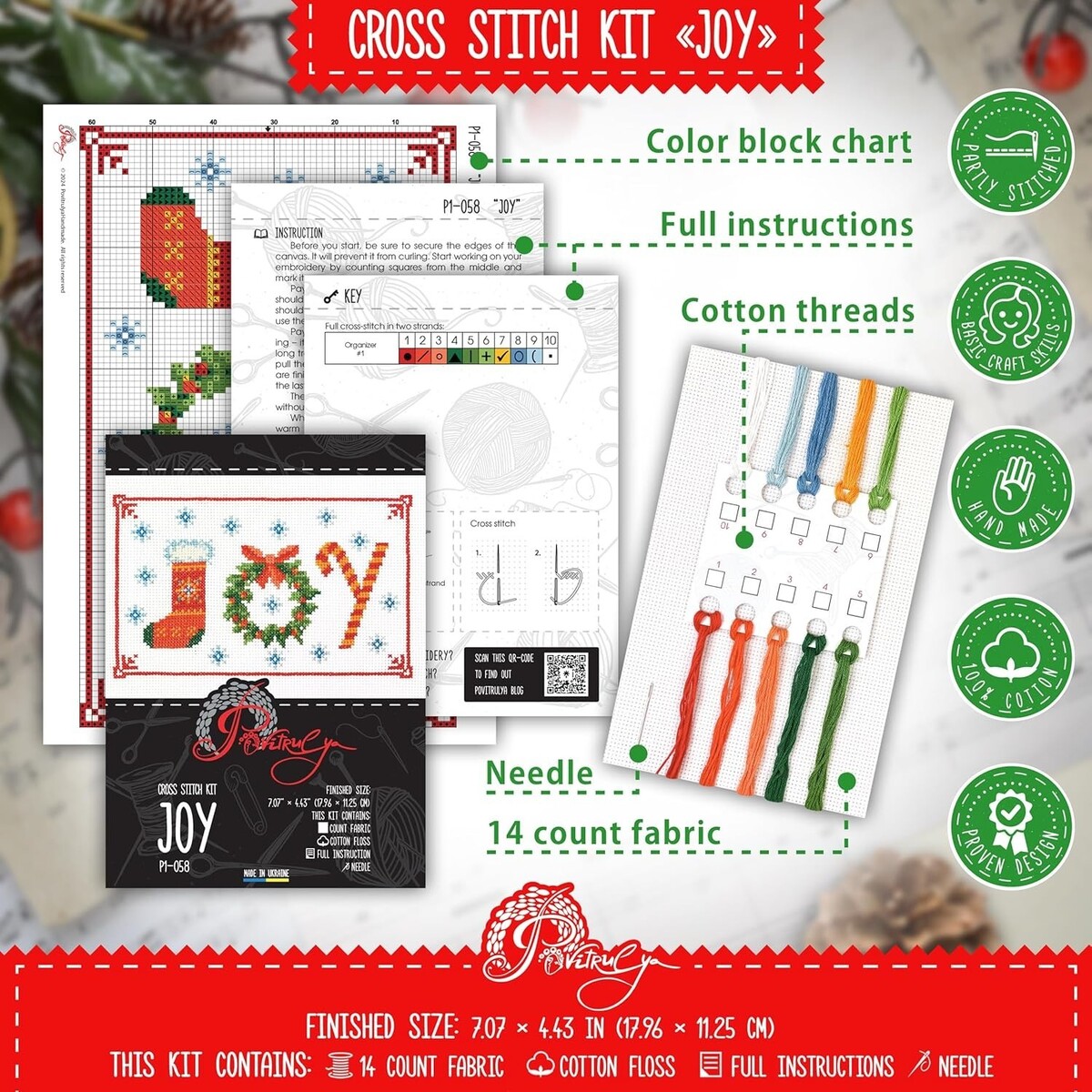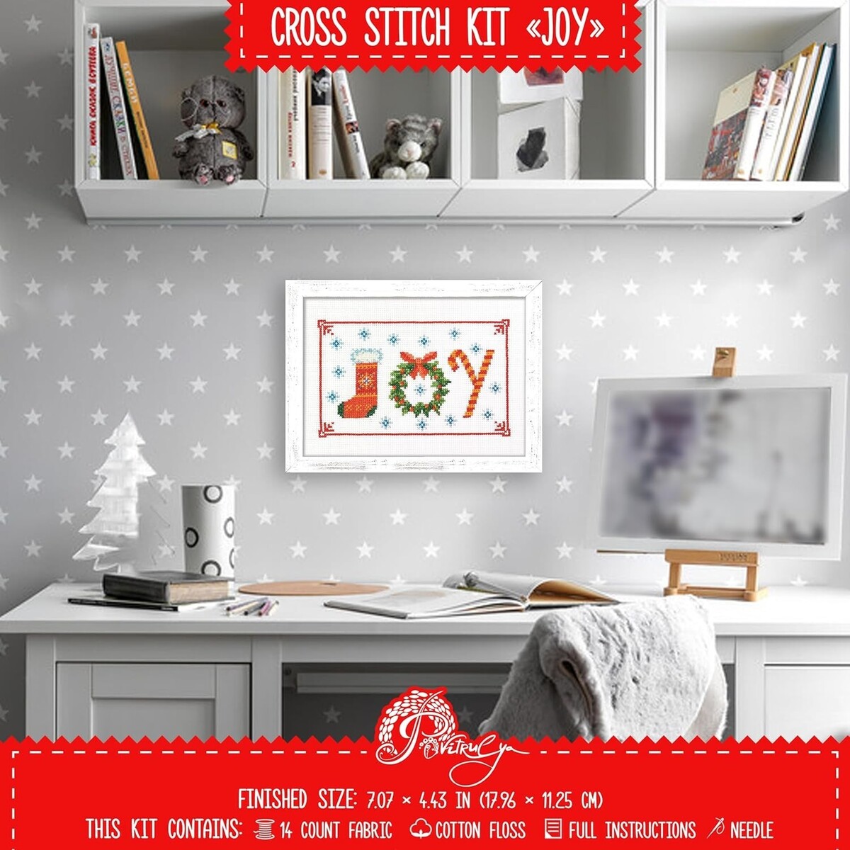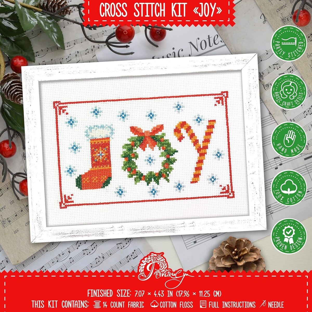Adult Christmas Cross Stitch Kit with Inspirational 'Joy' - Complete Craft Set