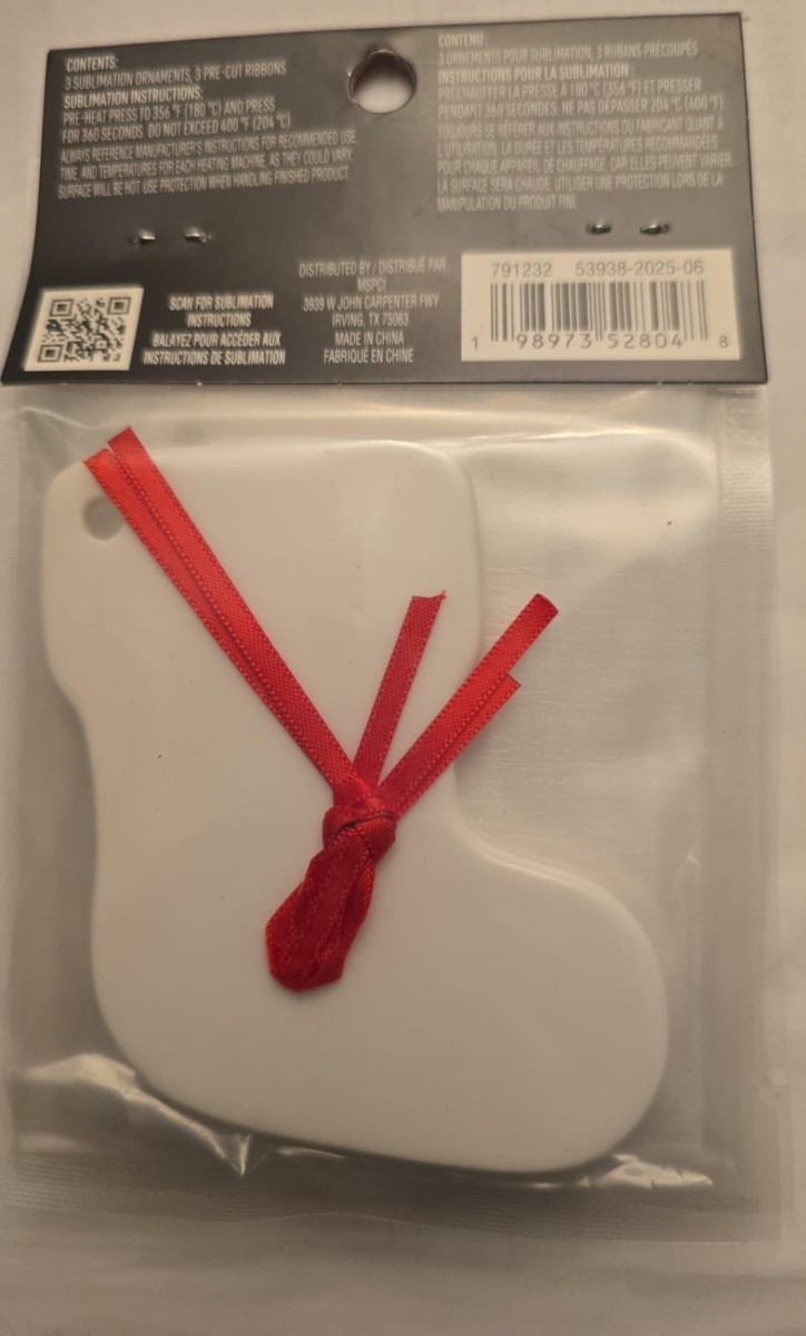 Make Market 3.5" Ceramic Stocking Sublimation Ornaments Christmas DIY Craft,3 CT