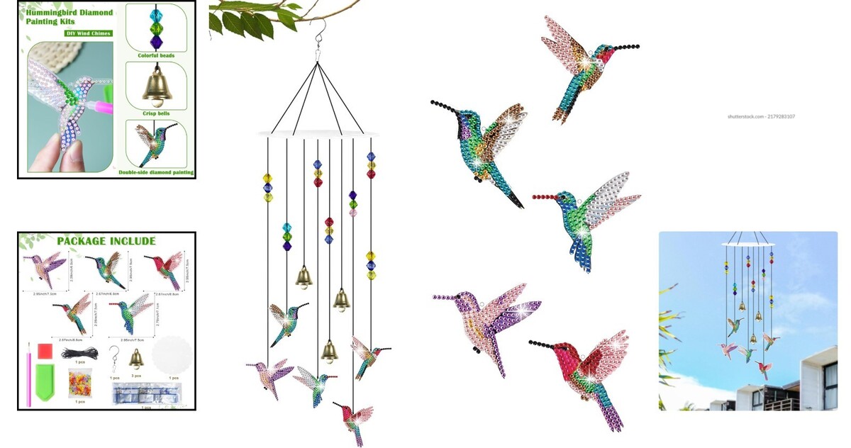 5D Diamond Painting Kit with Hummingbird Wind Chimes - Perfect Craft for Garden