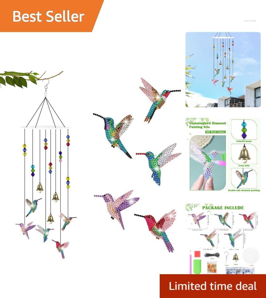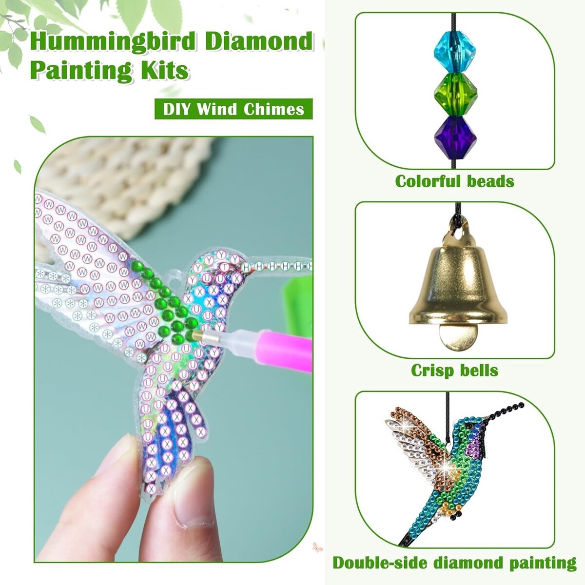 Embrace the beauty of nature and craftsmanship?order your 5D Diamond Painting Kit with Hummingbird Wind Chimes today!