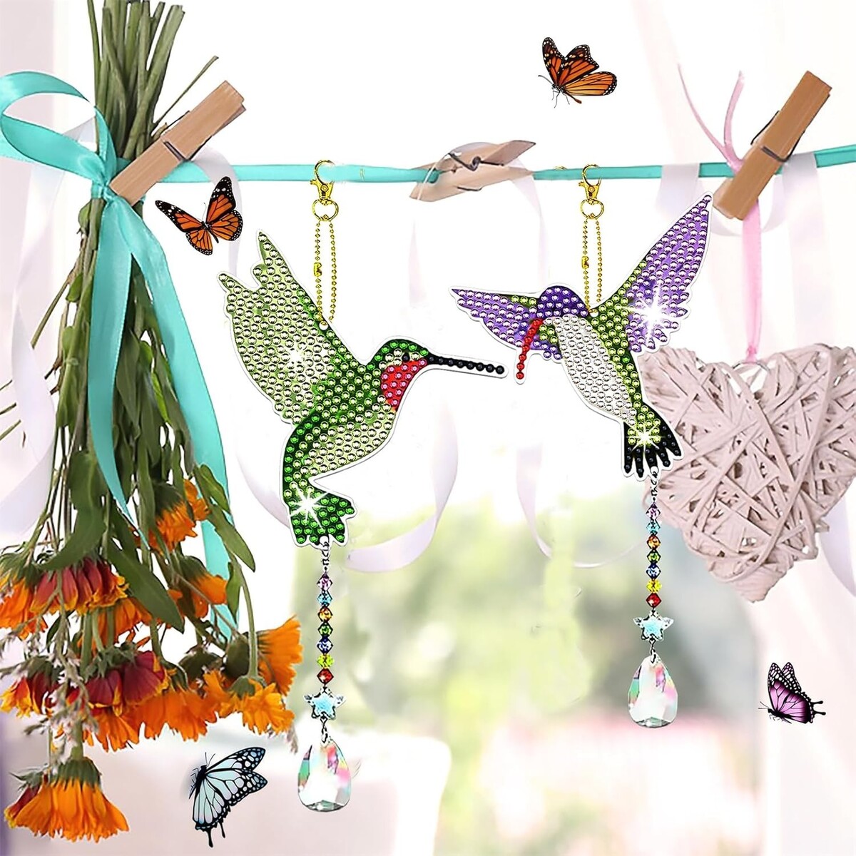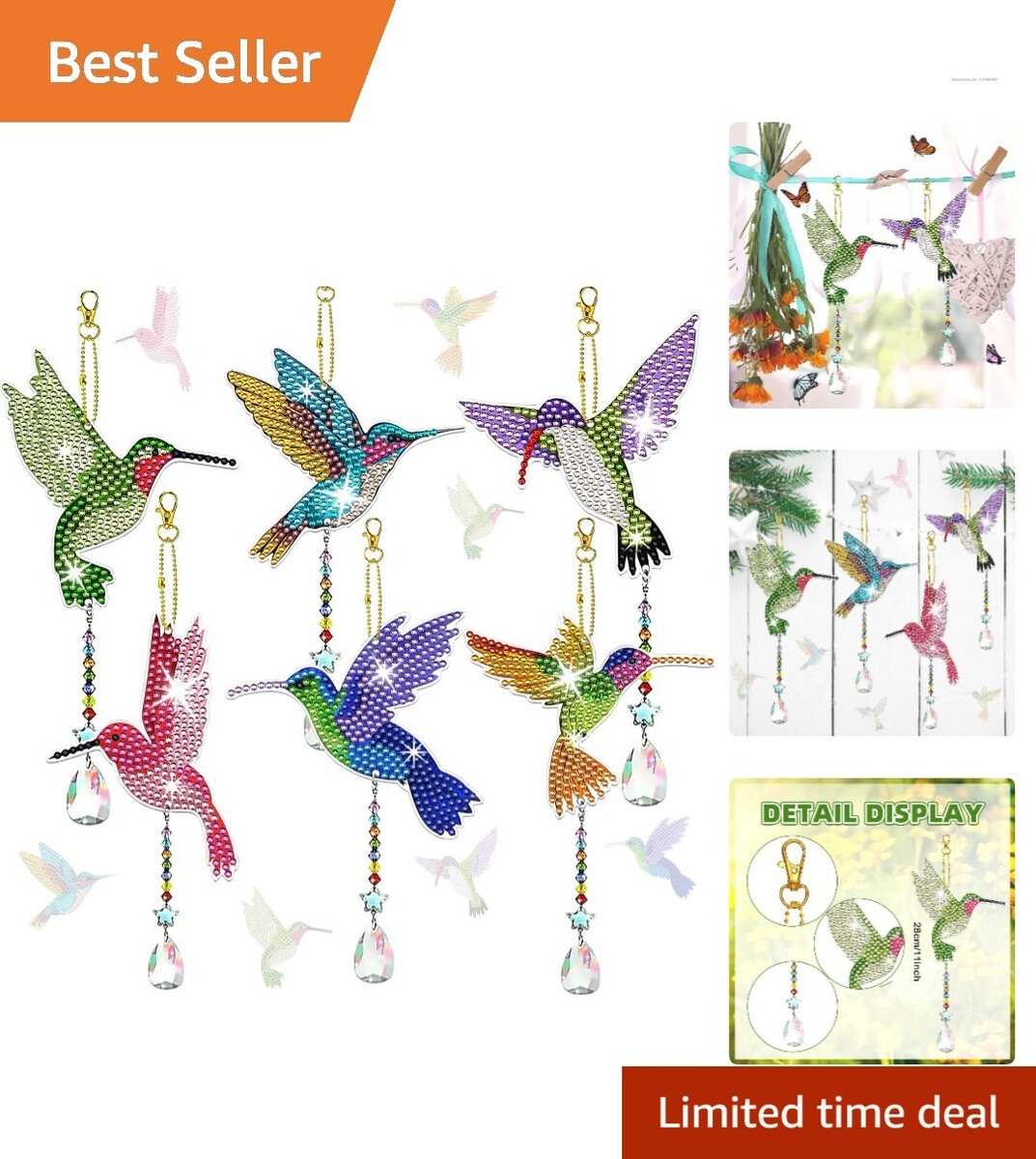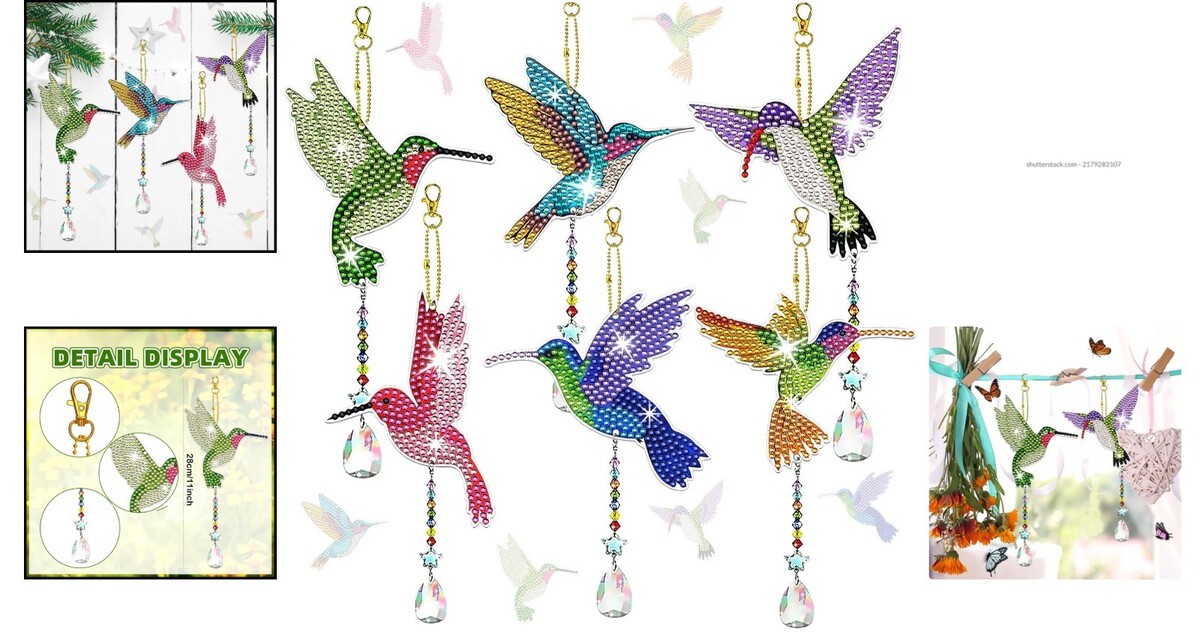 6 Pcs DIY Hummingbird Diamond Painting Kits - Elegant Suncatchers for Adults